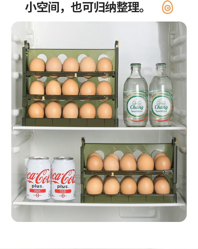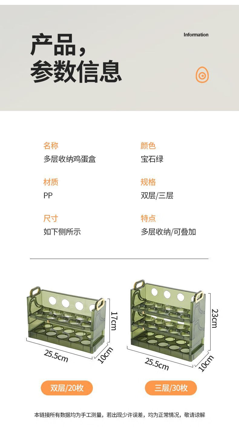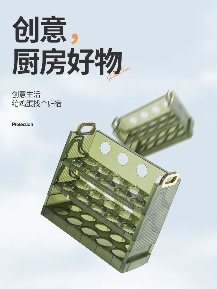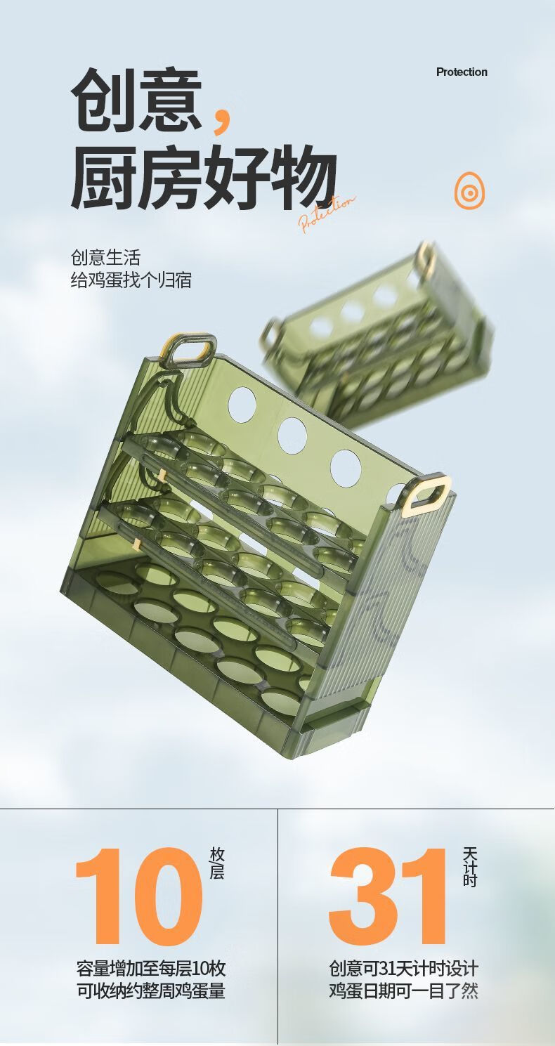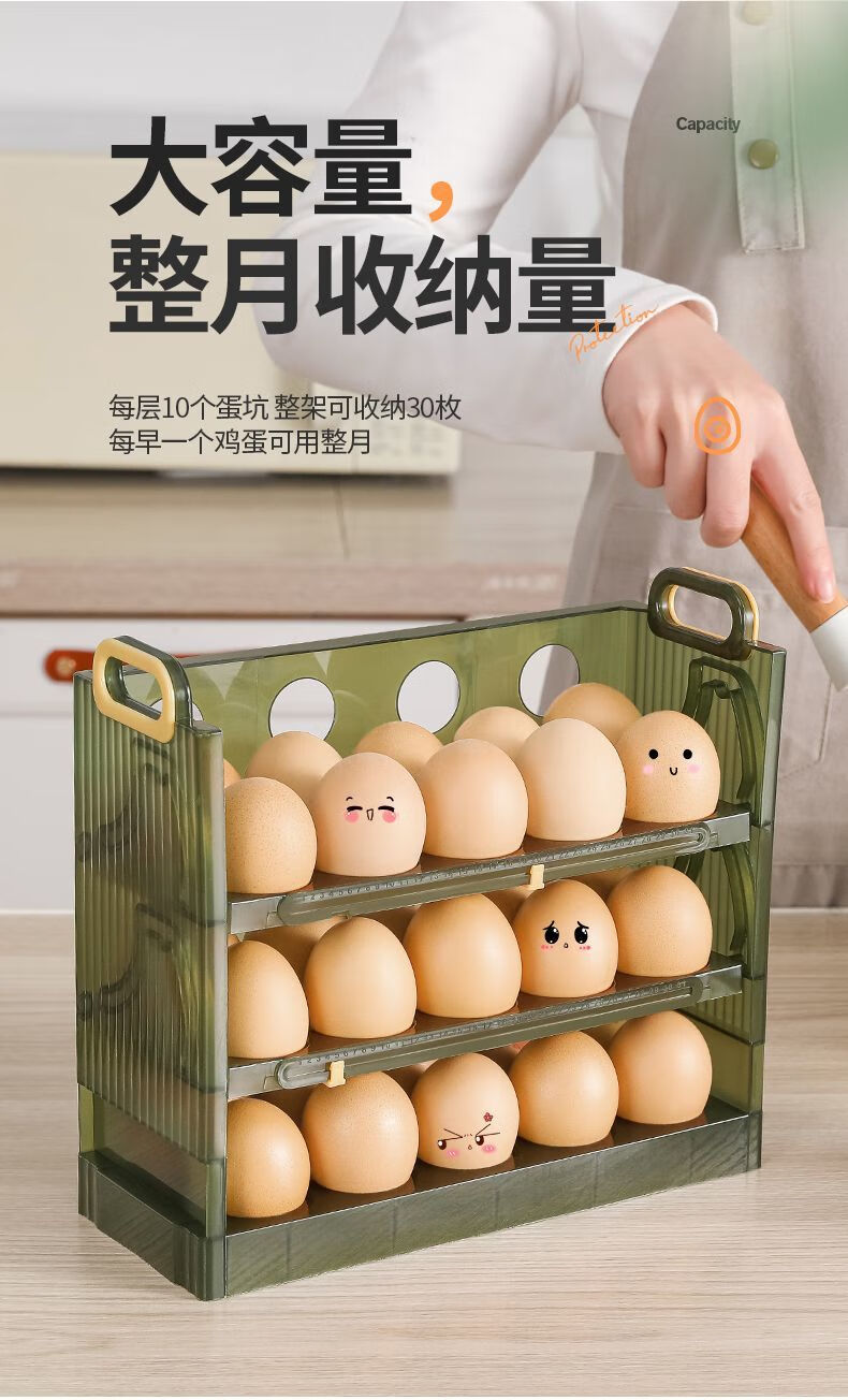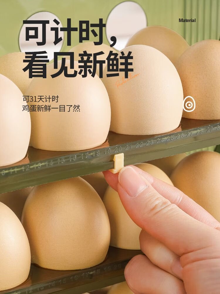 An Junsheng egg storage folding flip egg carton refrigerator side door with timer fresh-keeping egg carton egg tray egg storage device green double layer (can hold 20 eggs)