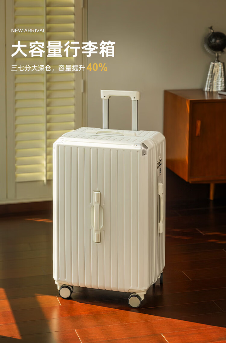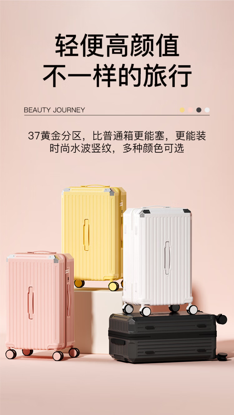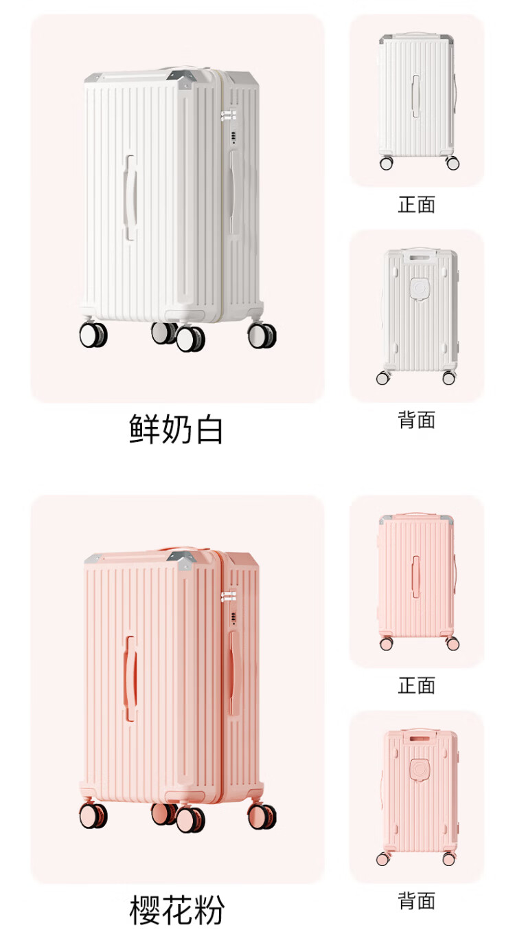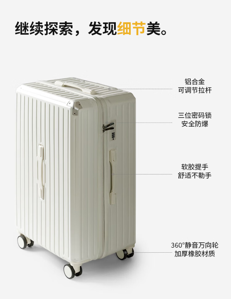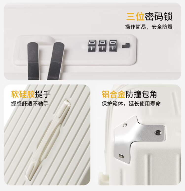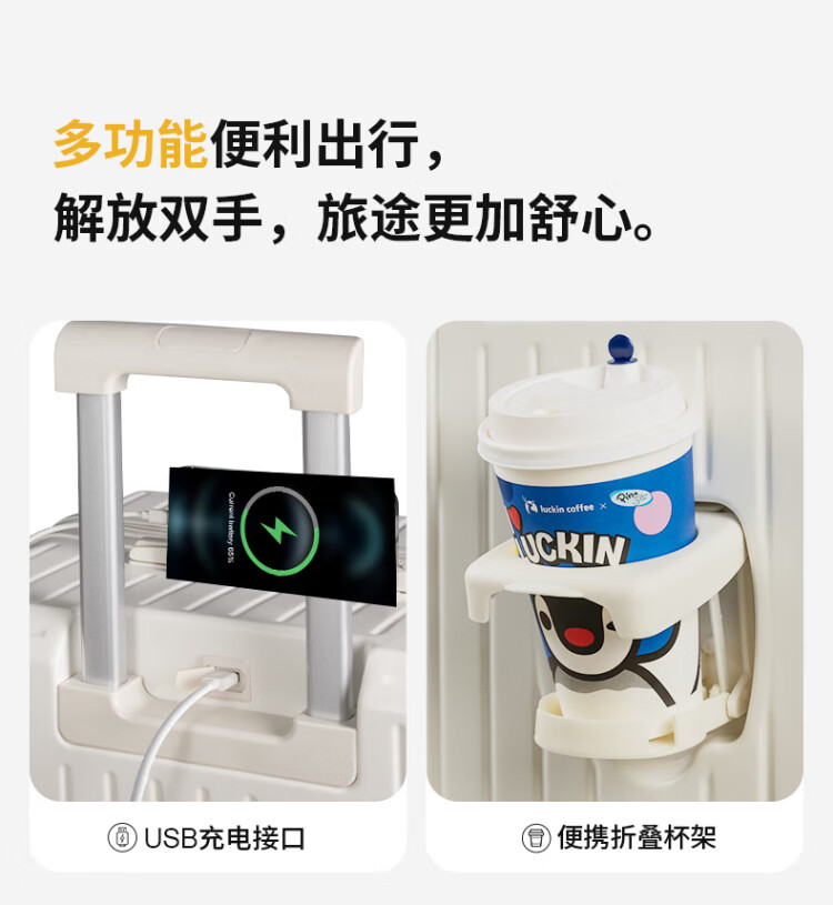 Punami suitcase with large capacity and good looks for female students, strong and durable, multifunctional large password travel trolley bag for men, cigarette gray white, cup holder + charging port + mobile phone holder, 26 inches, recommended for medium and long distances