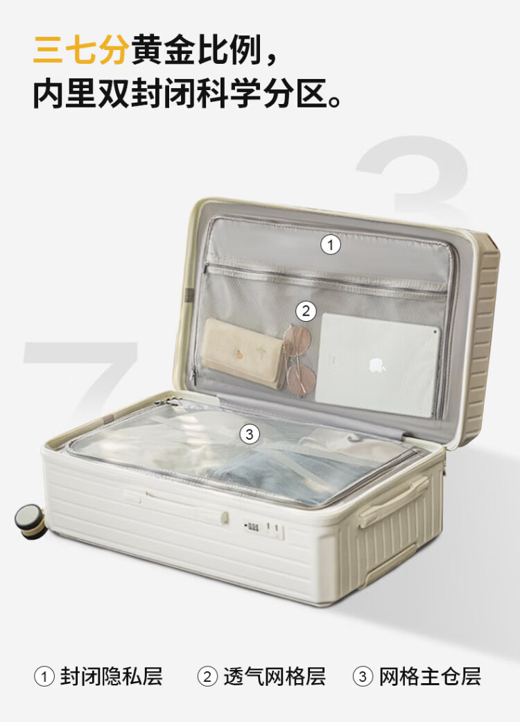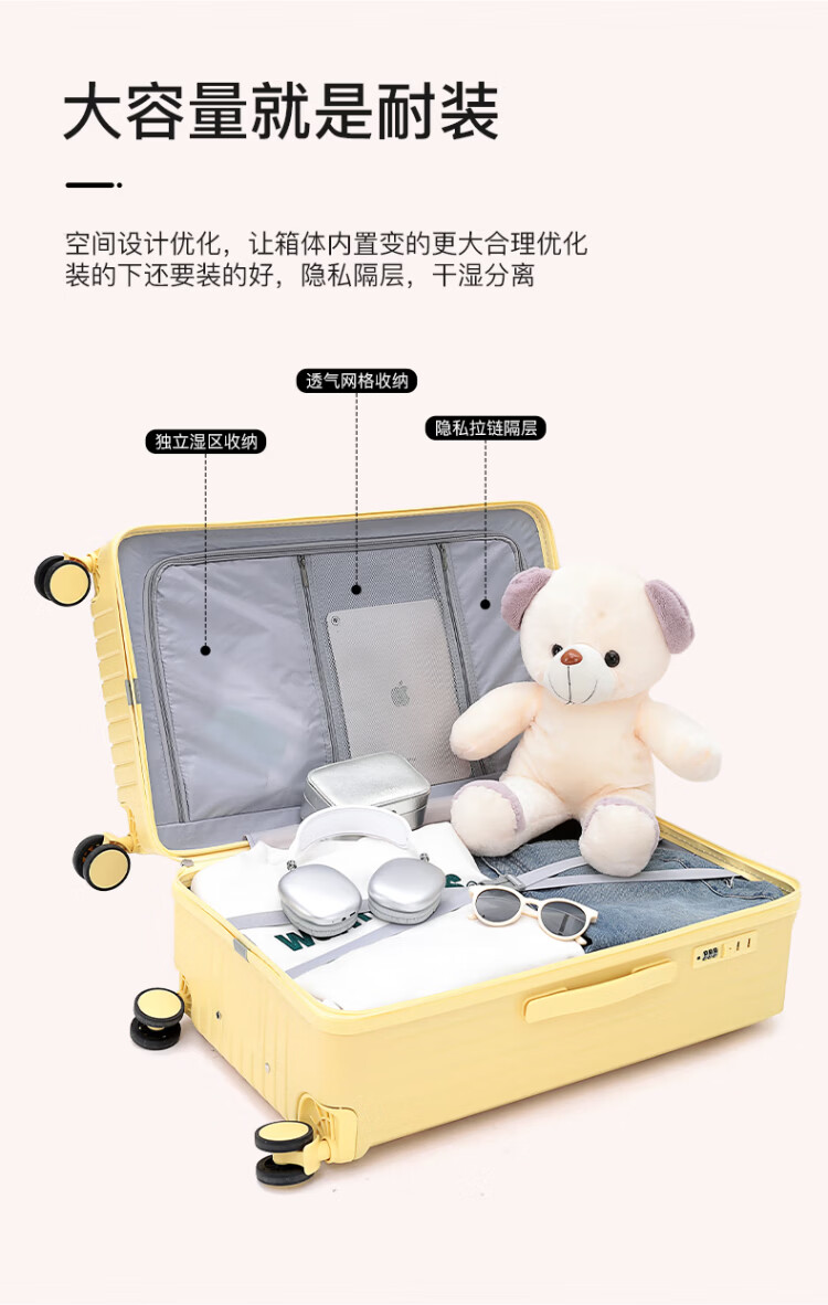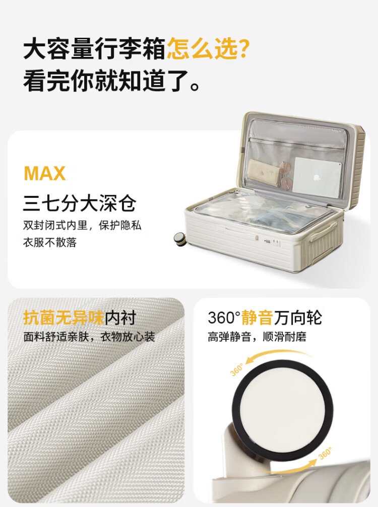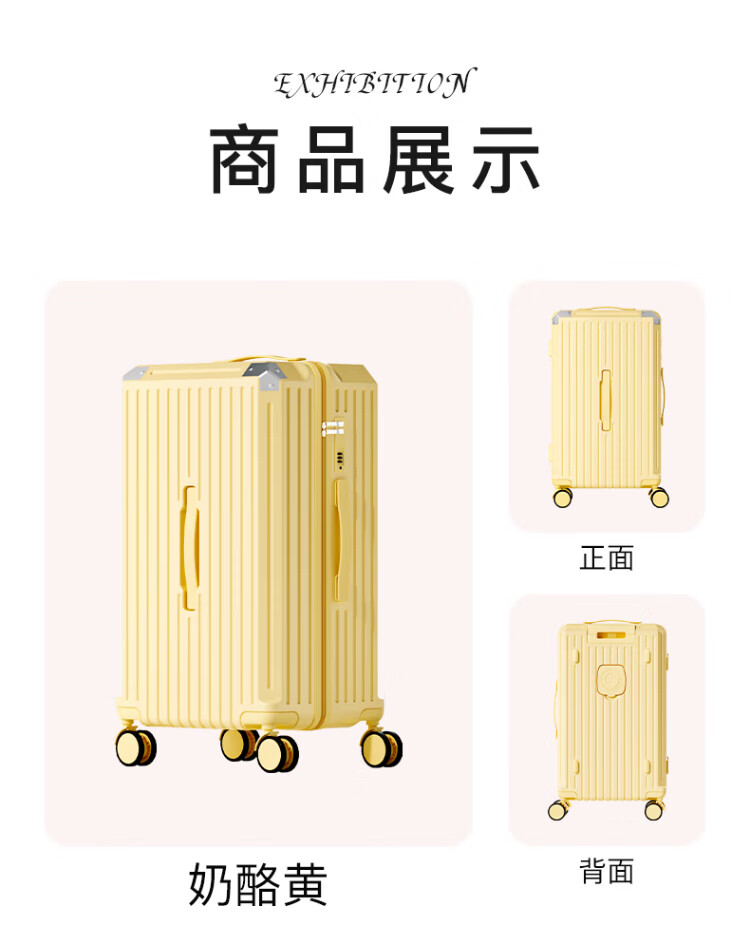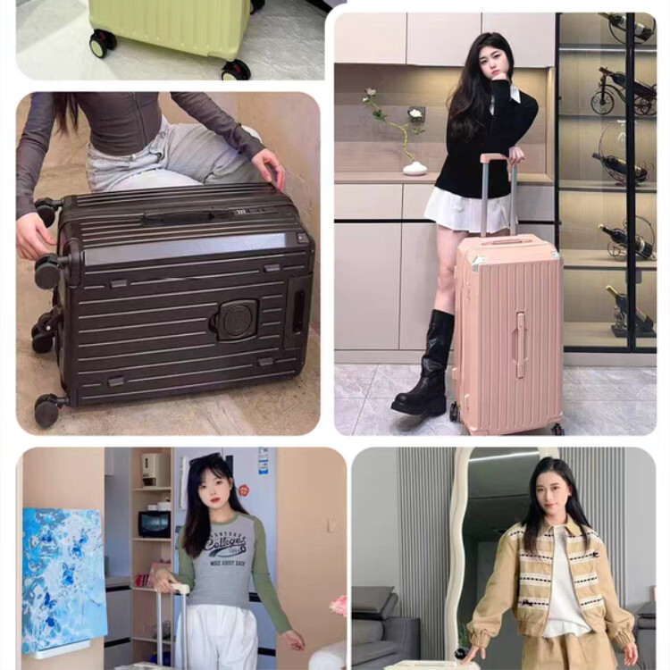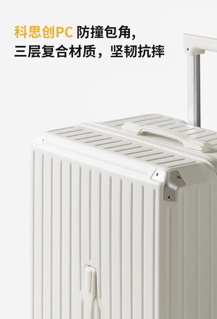 Punami suitcase with large capacity and good looks for female students, strong and durable, multifunctional large password travel trolley bag for men, cigarette gray white, cup holder + charging port + mobile phone holder, 26 inches, recommended for medium and long distances