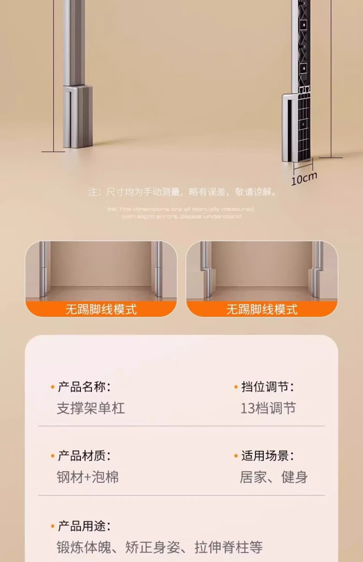 Maifeite floor-standing horizontal bar home pull-up device indoor single bar punch-free home waist protrusion bar training fitness rack new floor-standing horizontal bar-wall distance installation 130-168cm