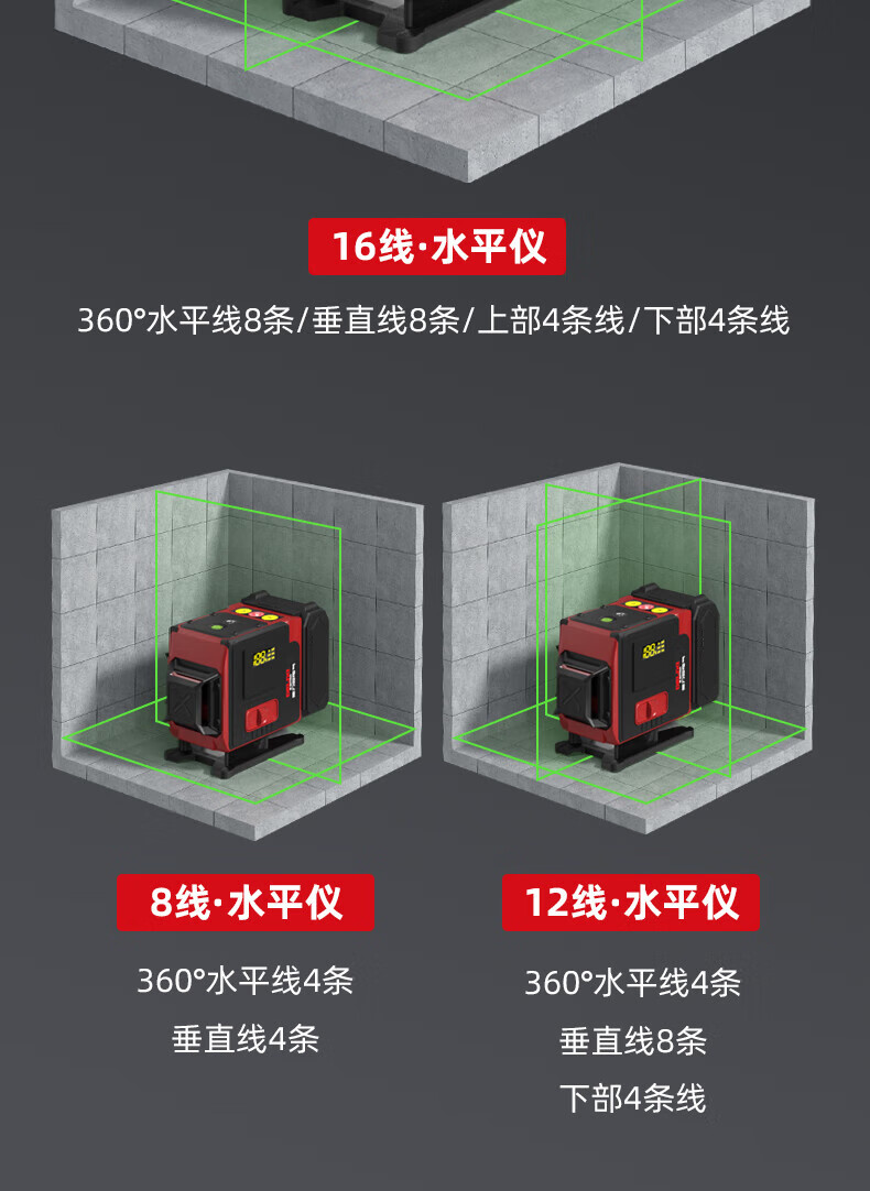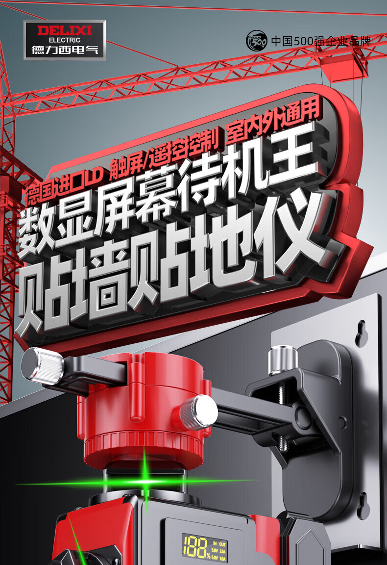 Delixi Electric Infrared Level High-precision Strong Light Thin Line Automatic Leveling Green Light Blue 12-Line Laser Building Outdoor 2 <No Breakage Digital Display> Green Light 8-Line Dual Electric