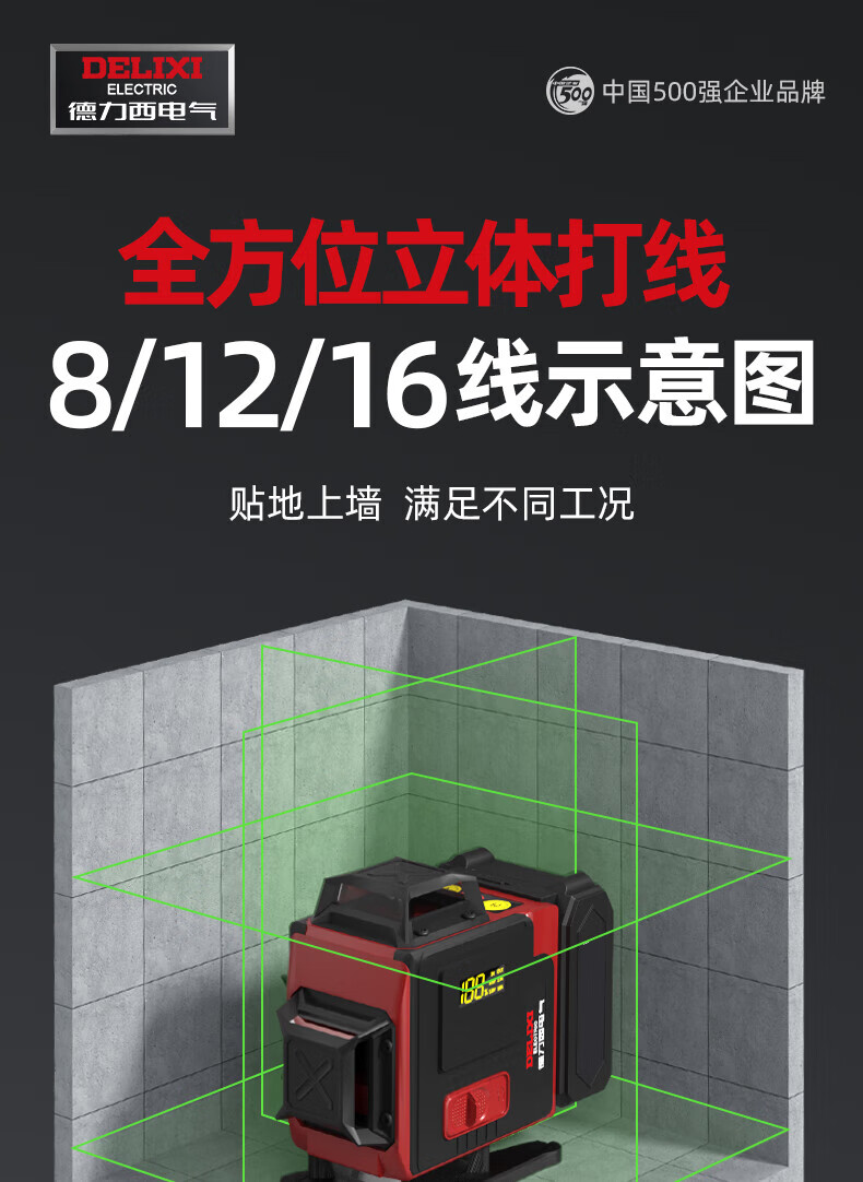 Delixi Electric Infrared Level High-precision Strong Light Thin Line Automatic Leveling Green Light Blue 12-Line Laser Building Outdoor 2 Green Light 8-Line Dual Electric