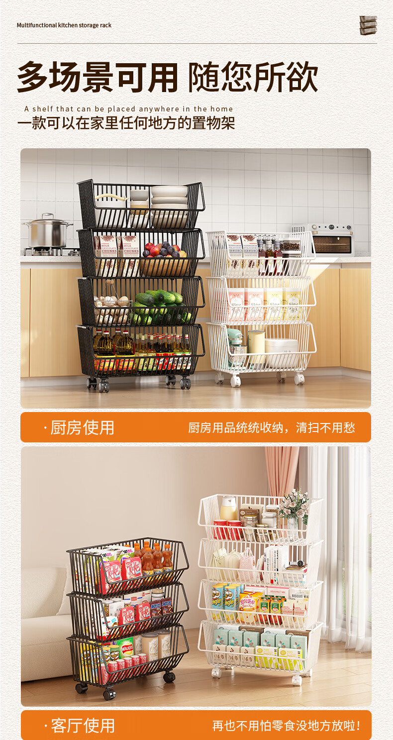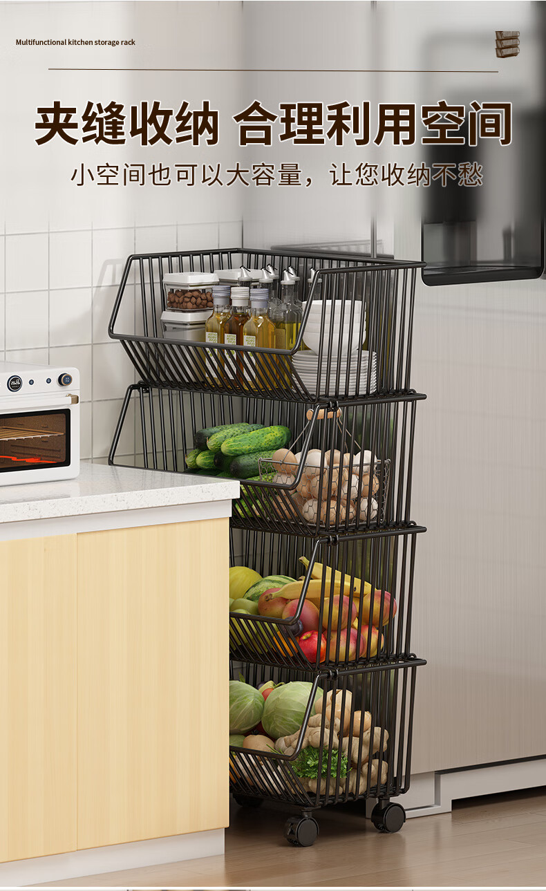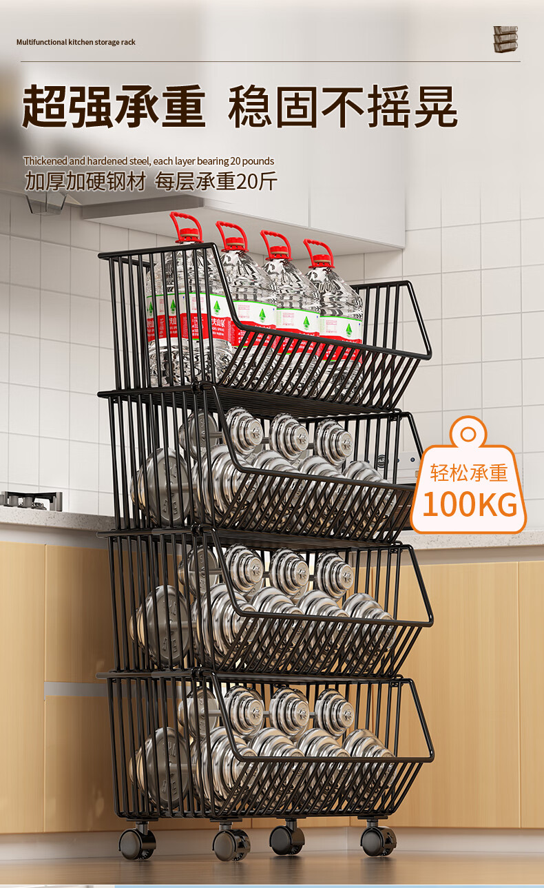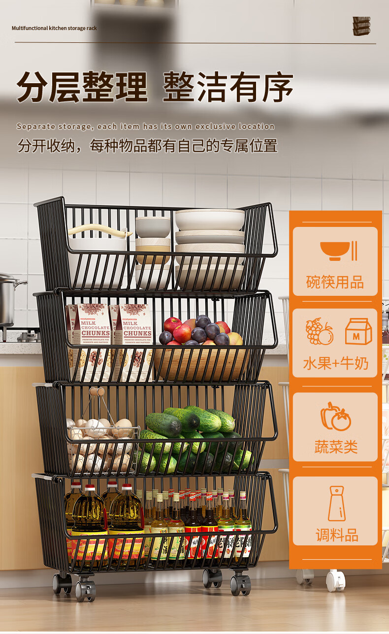 Fat Donglai's same style kitchen multi-functional floor-standing storage rack multi-layer storage rack snacks toys vegetable basket dishes vegetables high quality grilled black medium 30cm five layers + feet