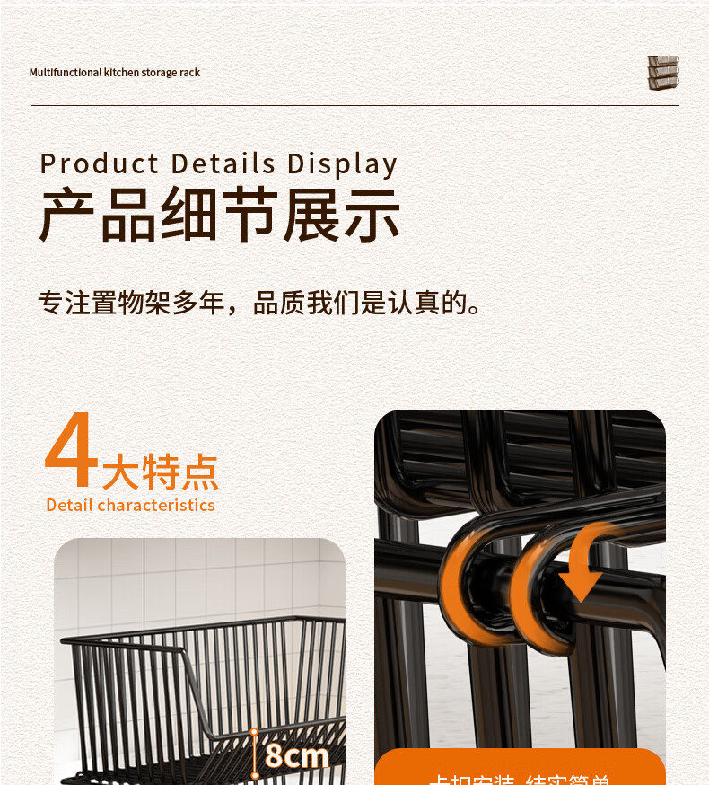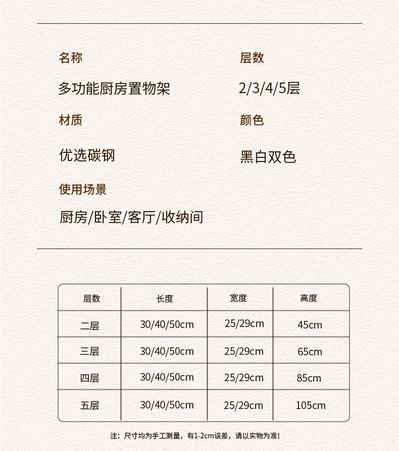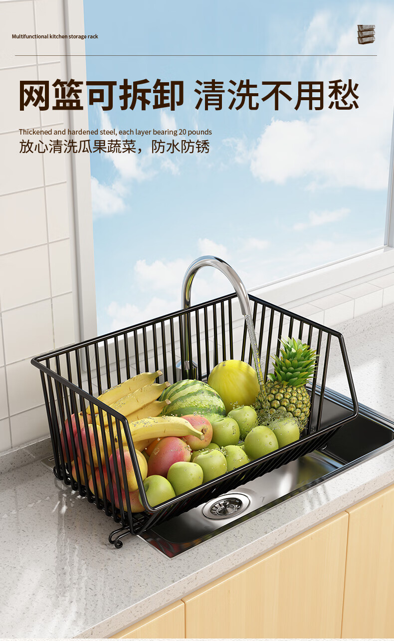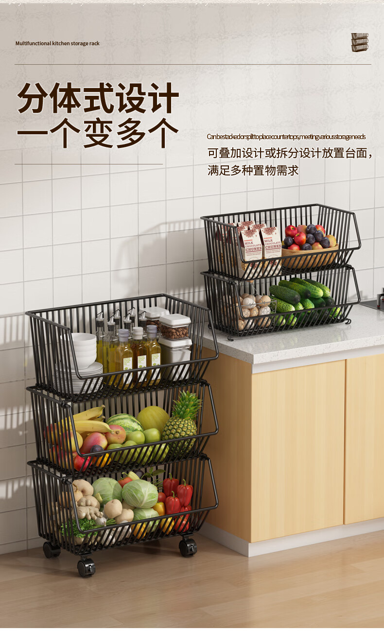 Fat Donglai's same style kitchen multi-functional floor-standing storage rack multi-layer storage rack snacks toys vegetable basket dishes vegetables high quality grilled black medium 30cm five layers + feet
