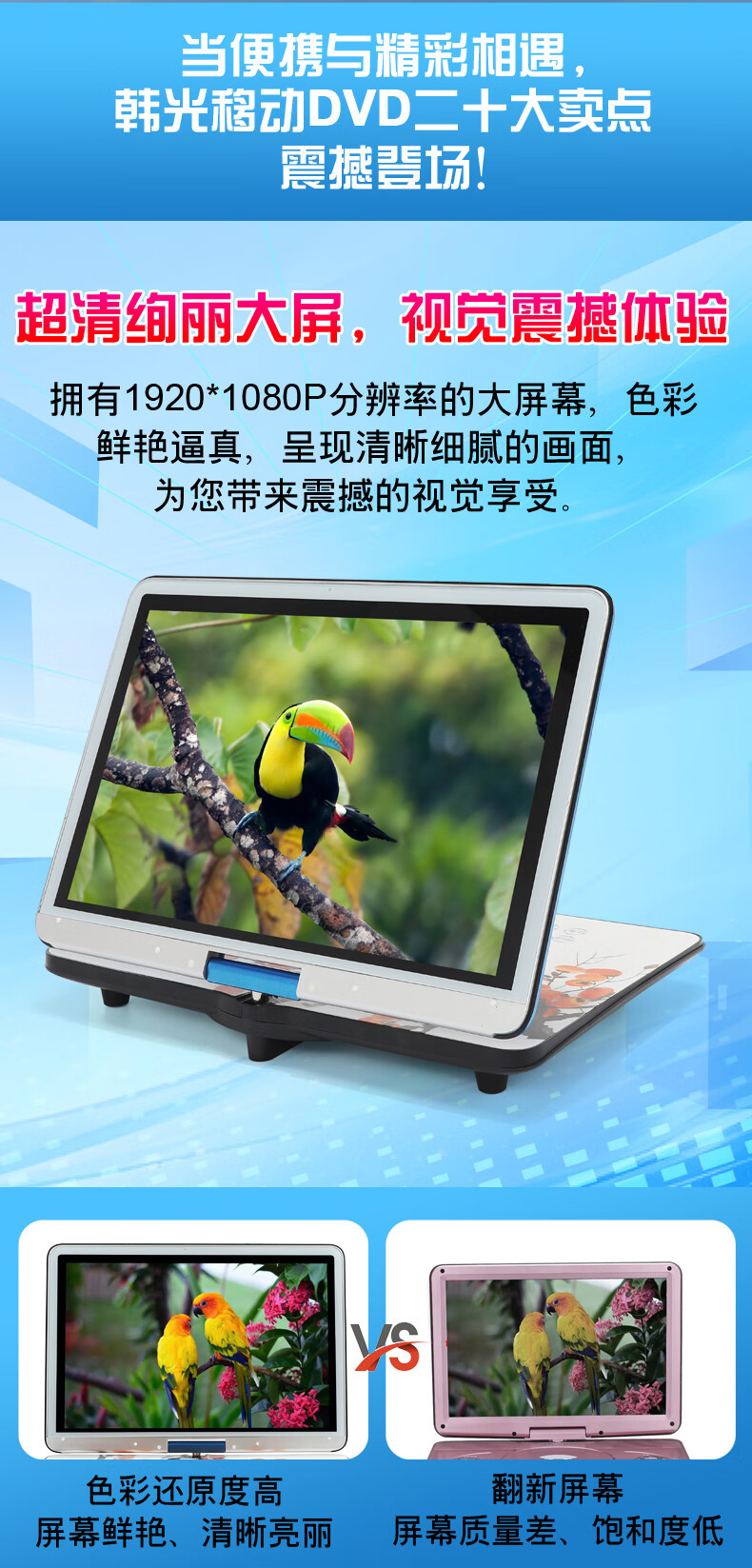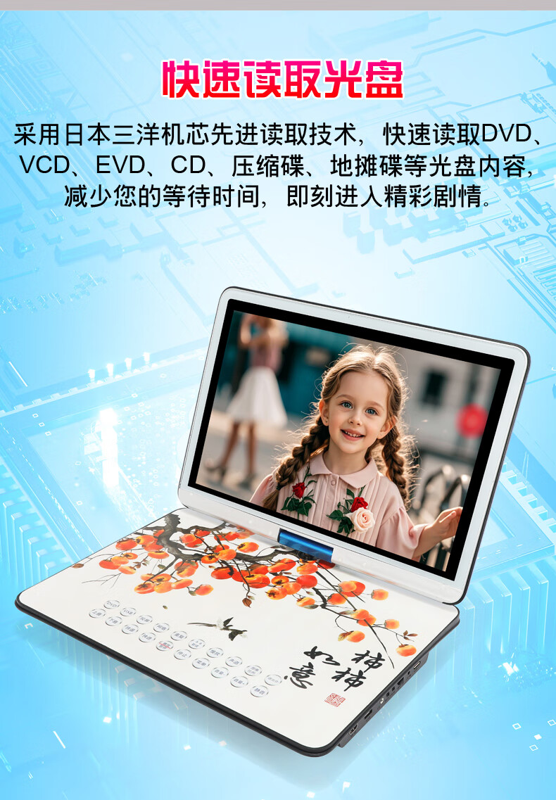 Hanguang 29-inch ultra-high-definition large-screen mobile DVD video EVD all-in-one full-format VCD disc wireless wifi network elderly TV home portable CD player blue 29-inch mobile screen projection network TV DVD version official standard