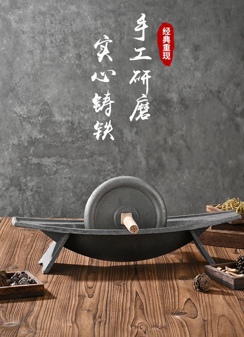 Kinami Chinese medicine roller, medicine grinding groove, medicine ship, cast iron medicine twister, groove tool crusher, old-fashioned pig iron manual grinder, extended 75cm*19cm, thickened overweight wheel, 18 meters