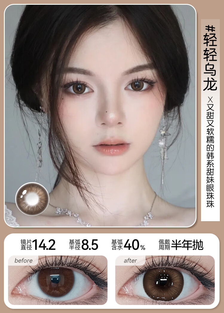 OVOLOOK Brown Color Contact Lenses Half Yearly Disposable Natural Exclusive New Sandwich Genuine Small Diameter Color Contact Lenses Flagship Store Lightly Oolong 14.2 Half Yearly Disposable 0 Degree