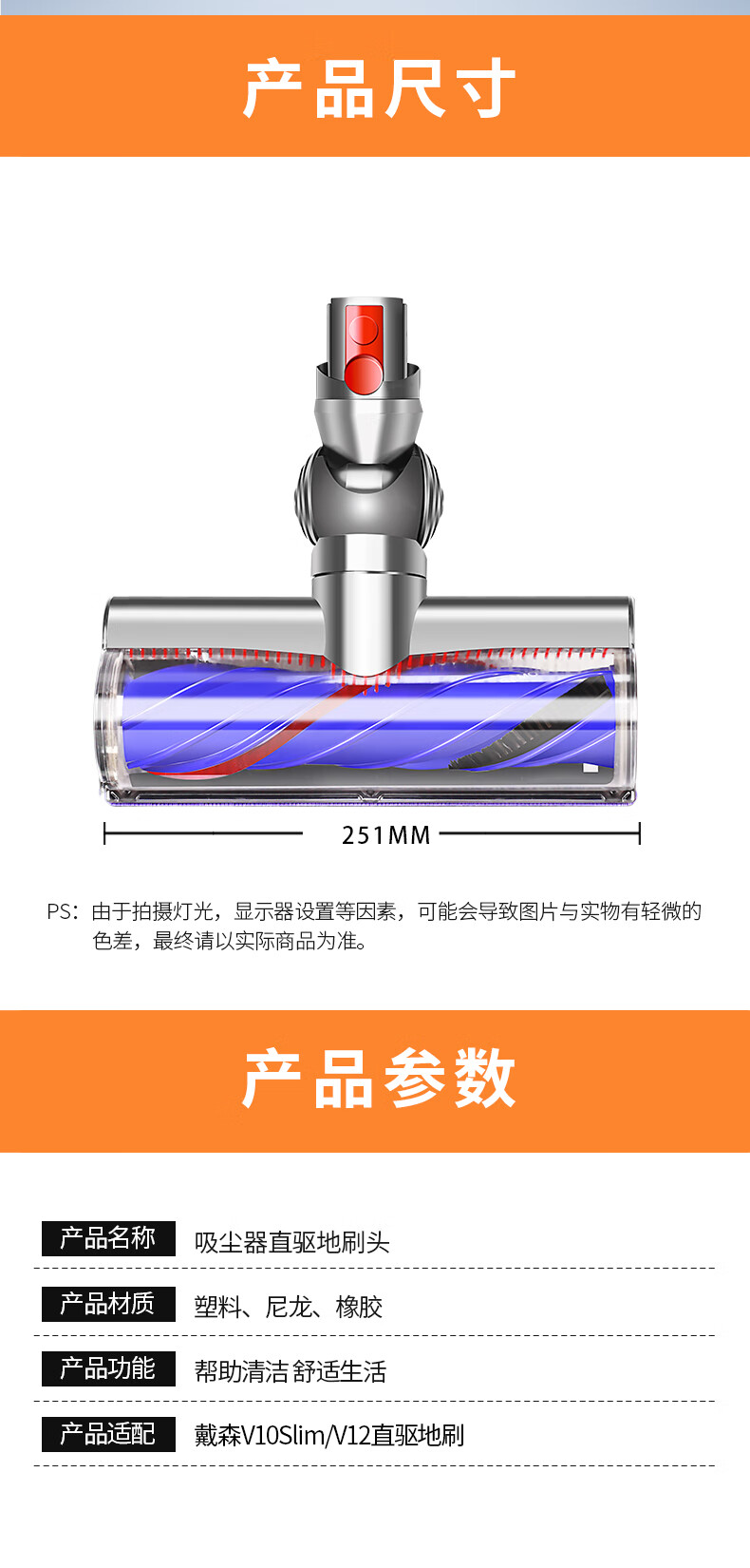 Lego is suitable for Dyson wireless vacuum cleaner V10slim V12 accessories electric direct drive suction head brush head mop floor brush V10slim/V12 electric direct drive brush head