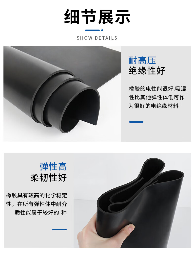 Yuanzu Rubber Mat Anti-slip Floor Insulation Black Rubber Mat Waterproof Buffer Industrial Shock Absorbing Plate Wear-Resistant Thickening Customized Any Cutting Length/Special-Shaped Processing