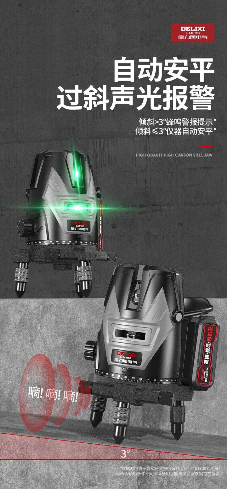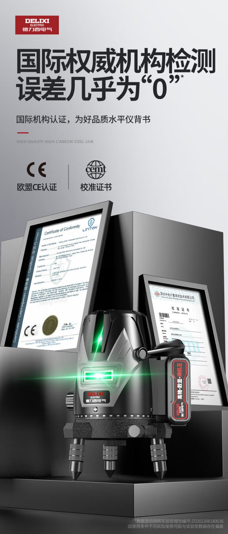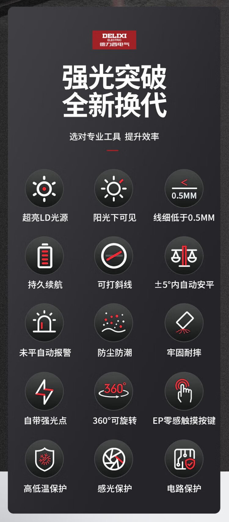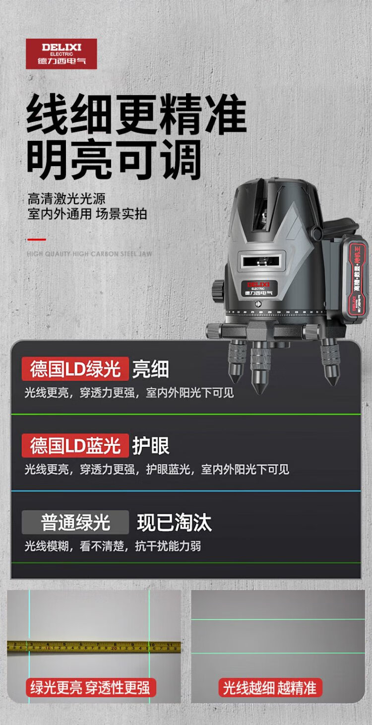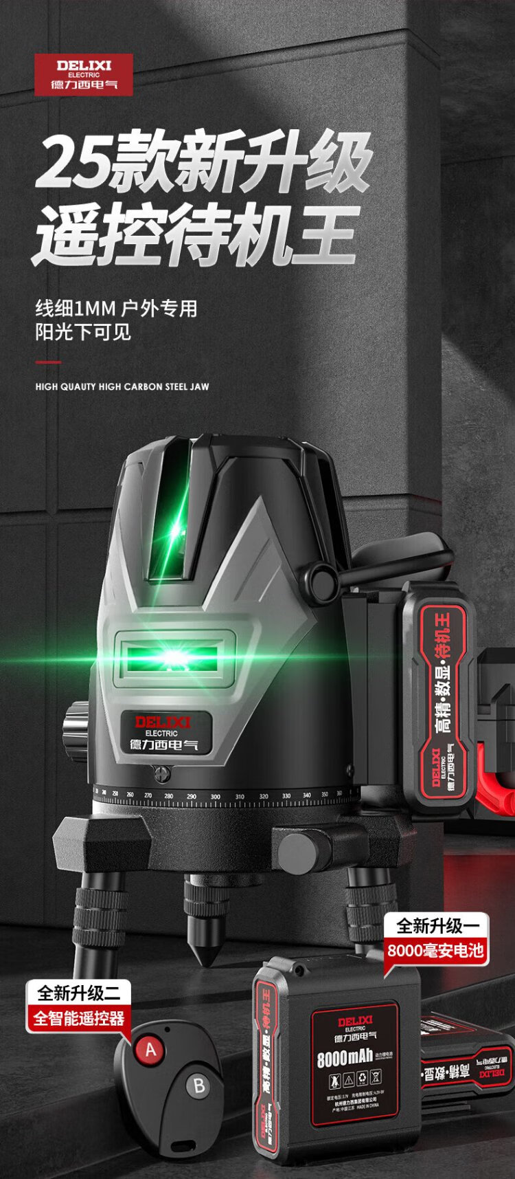 Delixi Electric Infrared Level High-precision Strong Light Thin Line Laser 35 Automatic Strong Light Outdoor Water Leveler High-Precision Strong Light Green Light 2-Line Dual Electric + Angle Frame