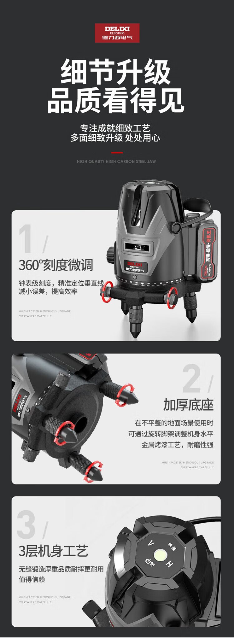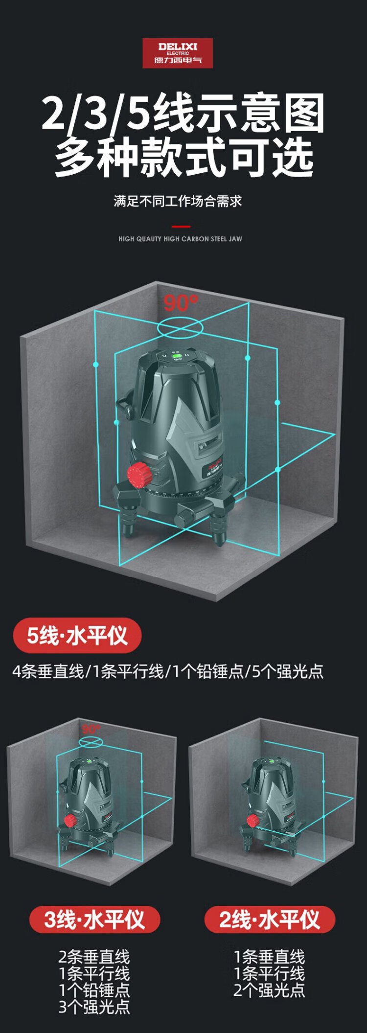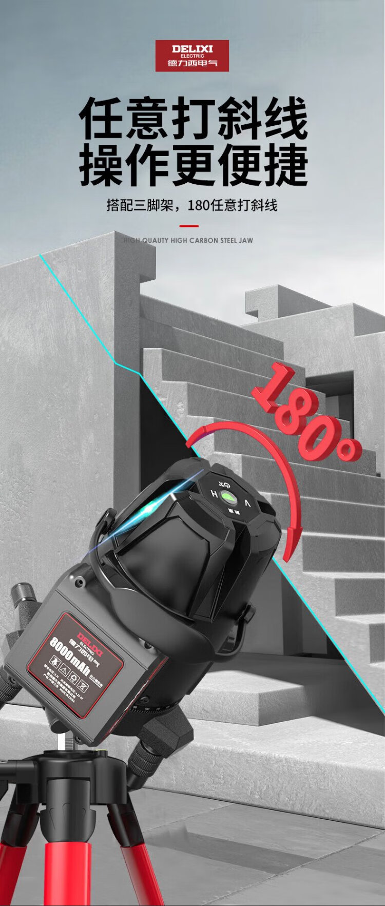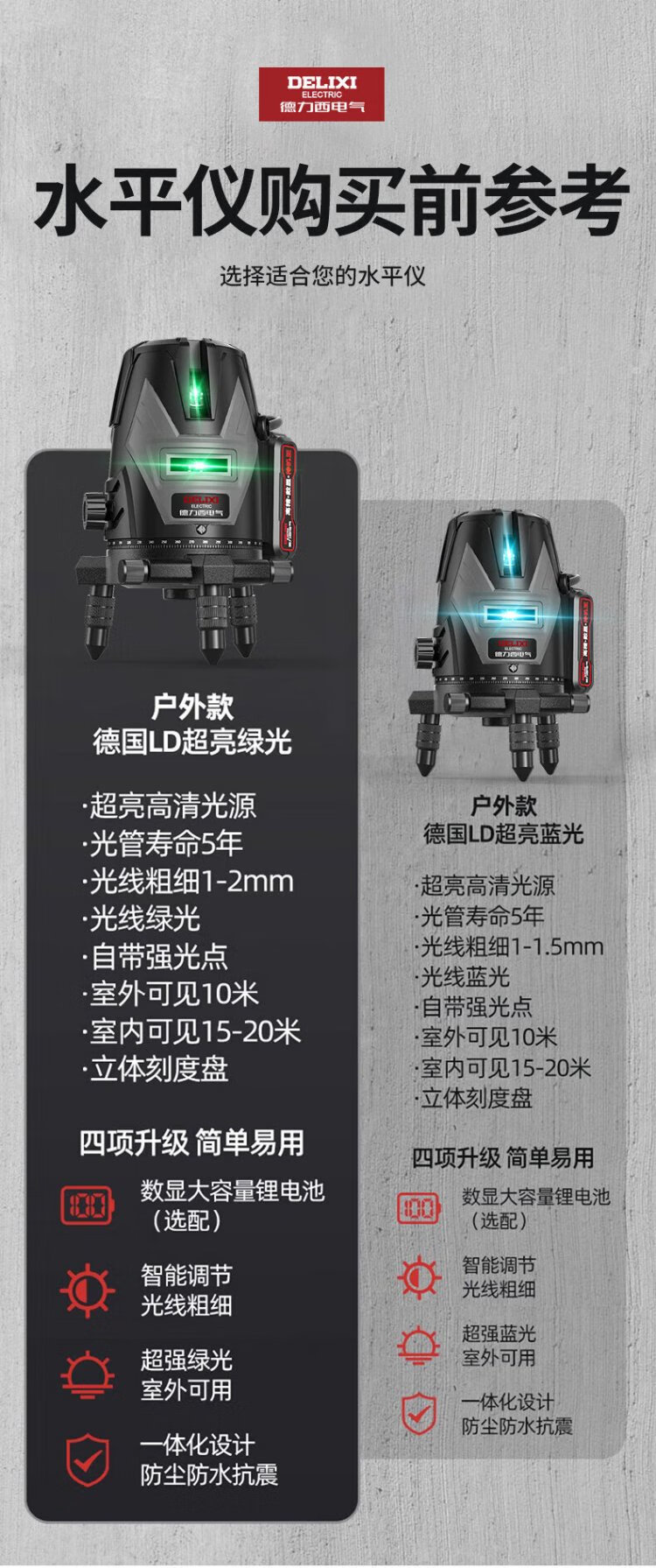 Delixi Electric Infrared Level High-precision Strong Light Thin Line Laser 35 Automatic Strong Light Outdoor Water Leveler High-Precision Strong Light Green Light 2-Line Dual Electric + Angle Frame