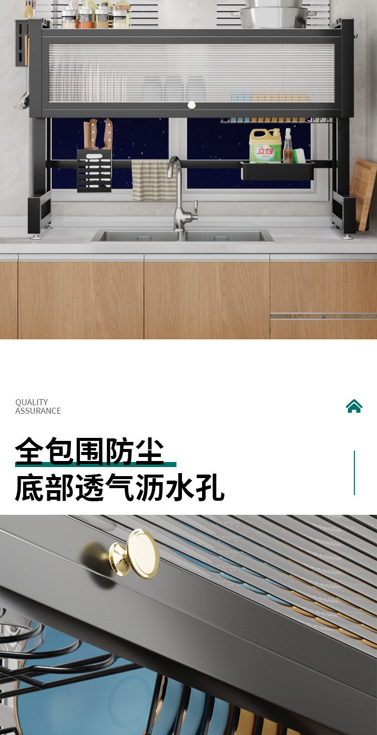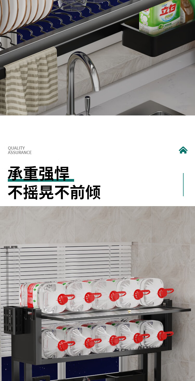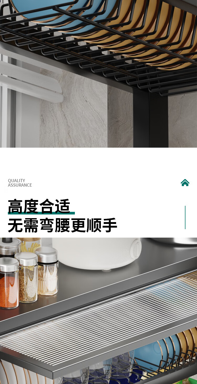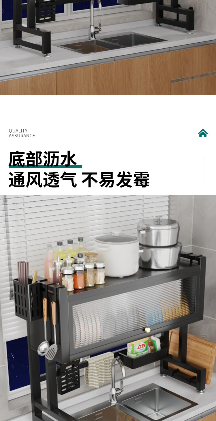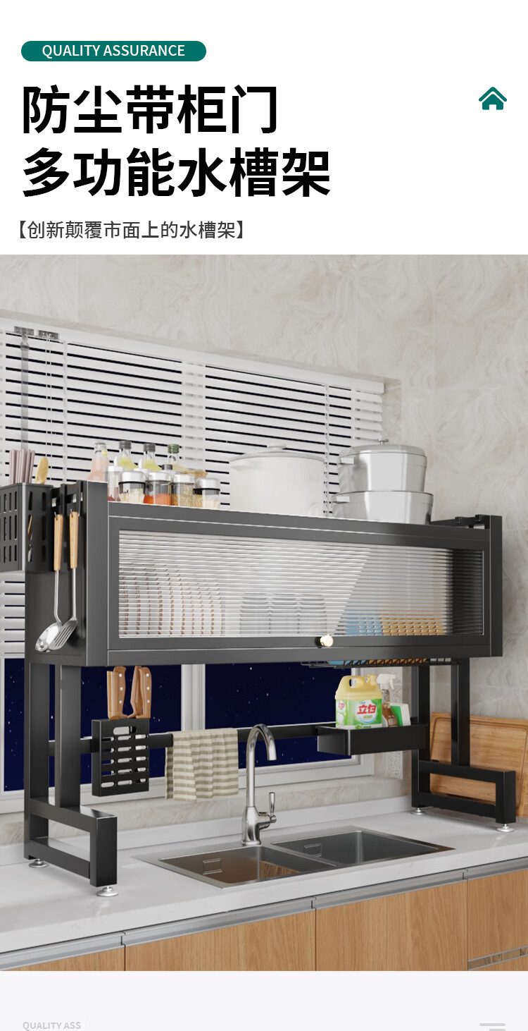 Zhizhi Yifan kitchen sink drain rack table-mounted wash basin dish storage rack above the sink dish draining artifact black 75cm bold and thickened complete set with cabinet door