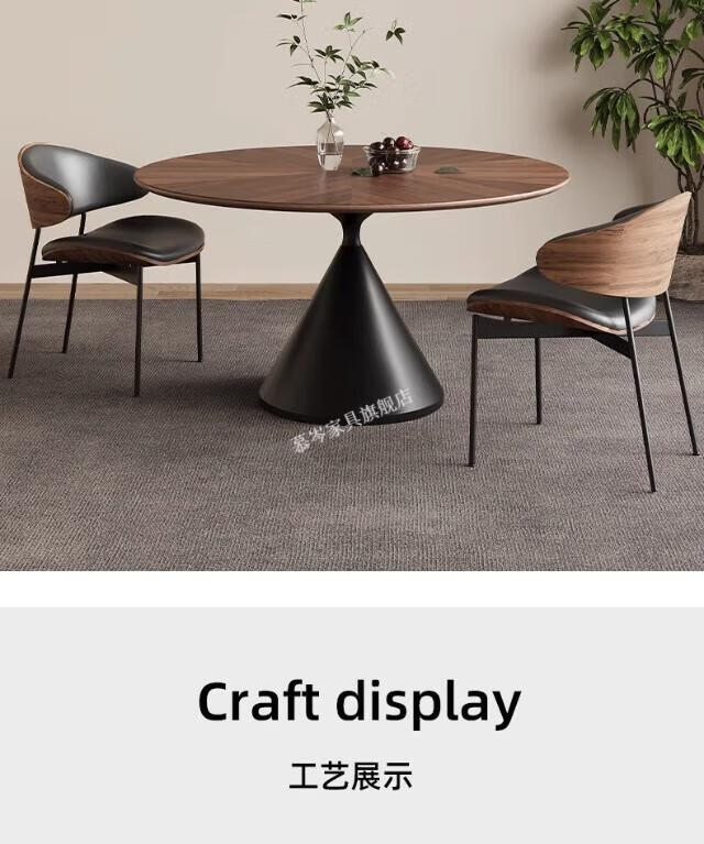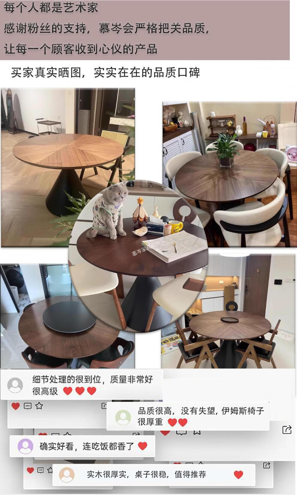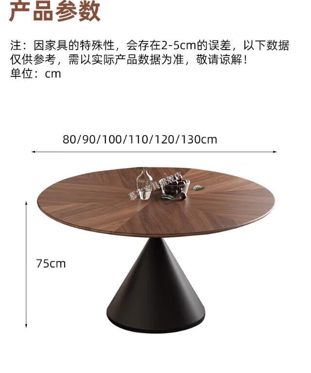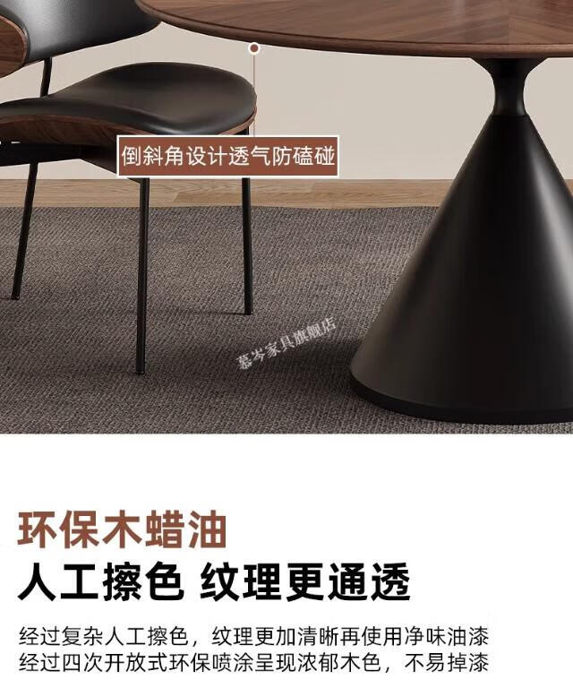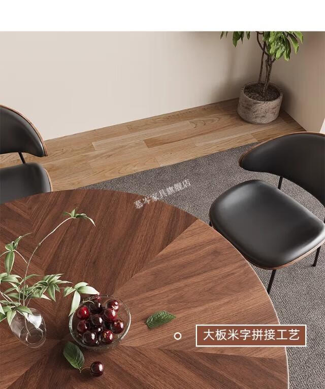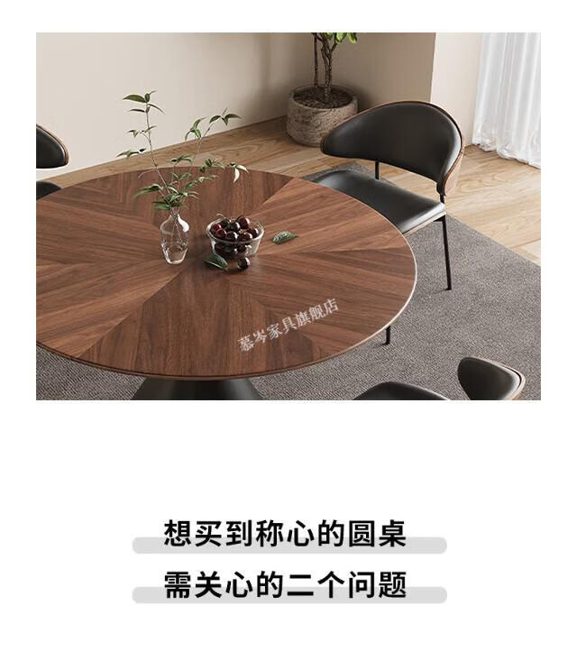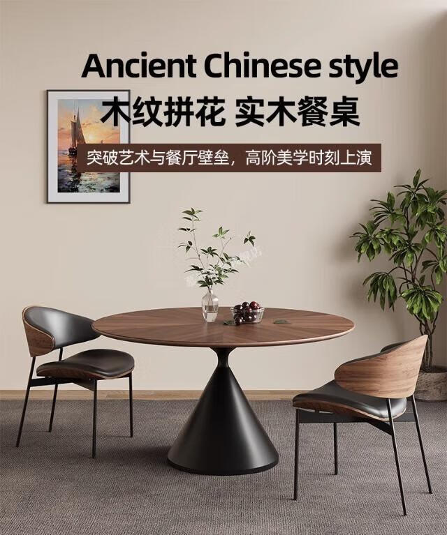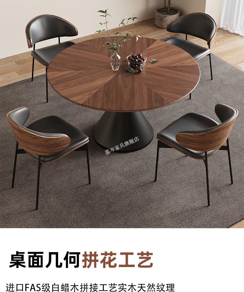 Mu Cen simple mid-century style round solid wood dining table small apartment modern minimalist parquet round table negotiation home dining table walnut color one table and four chairs with dining set 120cm