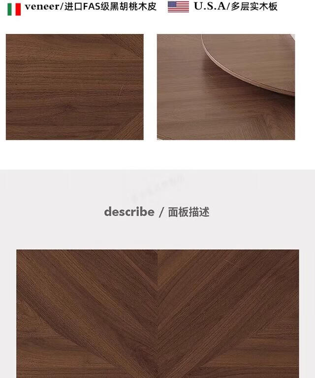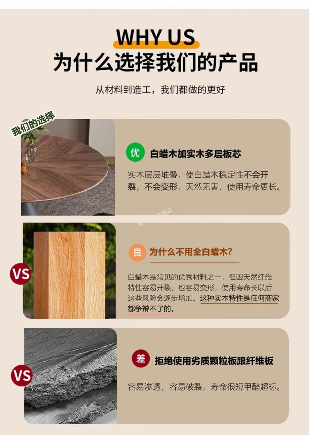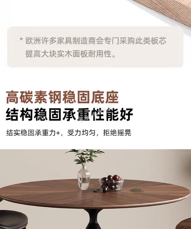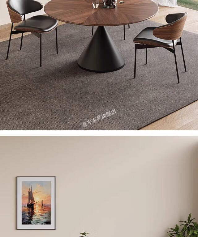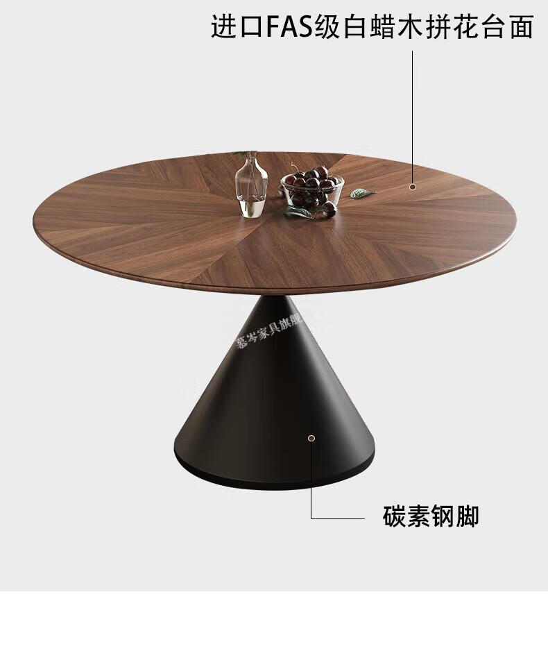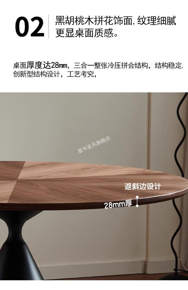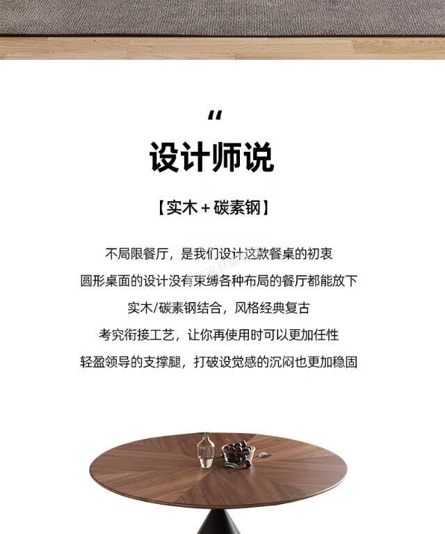 Mu Cen simple mid-century style round solid wood dining table small apartment modern minimalist parquet round table negotiation home dining table walnut color one table and four chairs with dining set 120cm