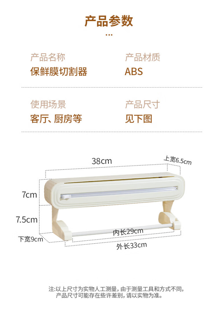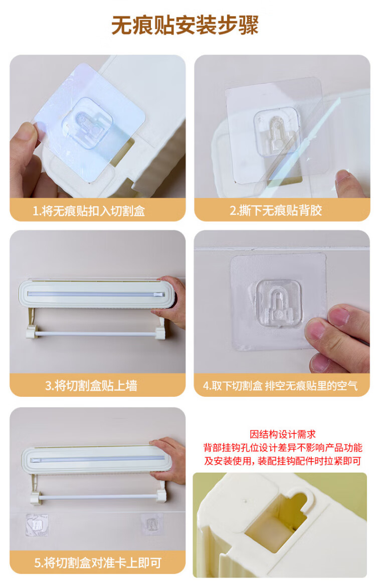 Mudingding plastic wrap cutter kitchen household food plastic wrap cutting box disposable plastic wrap tear-off box plastic wrap cutter (without magnetic suction cup hook)