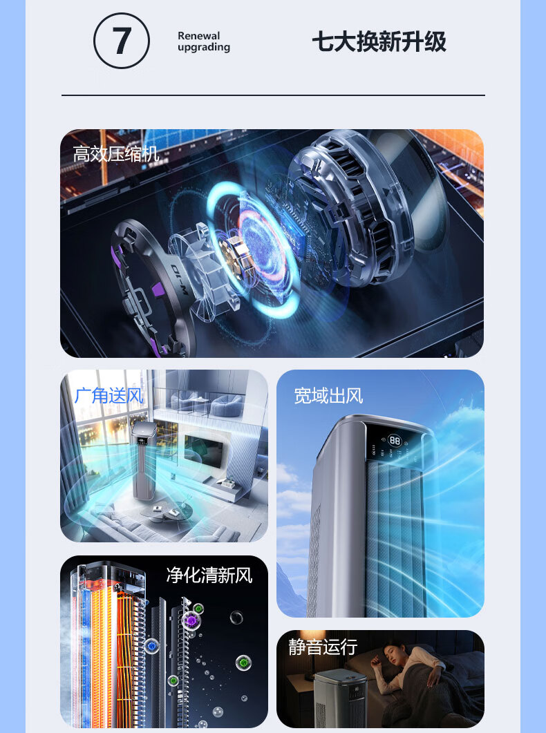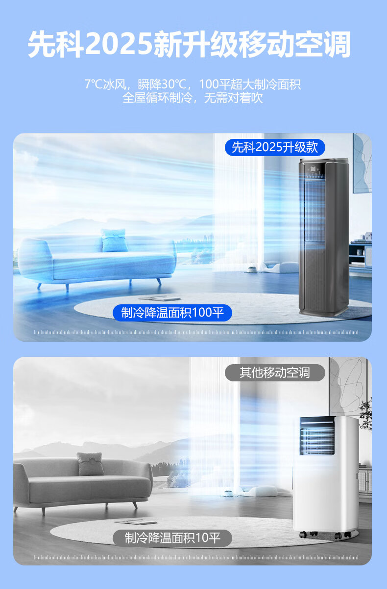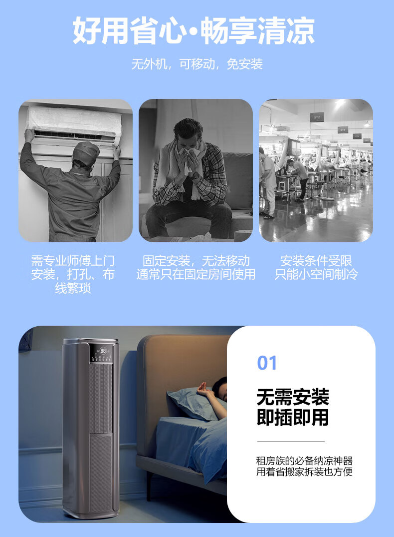 Xenko tower type mobile air conditioner, single cooling and heating all-in-one unit, no external unit, 3 HP air conditioner, kitchen, small rental house, bedroom, local subsidy 20%, air conditioner, energy saving, no external unit, no water added, 2 HP larger, enhanced cooling and heating model, no fear of wind resistance