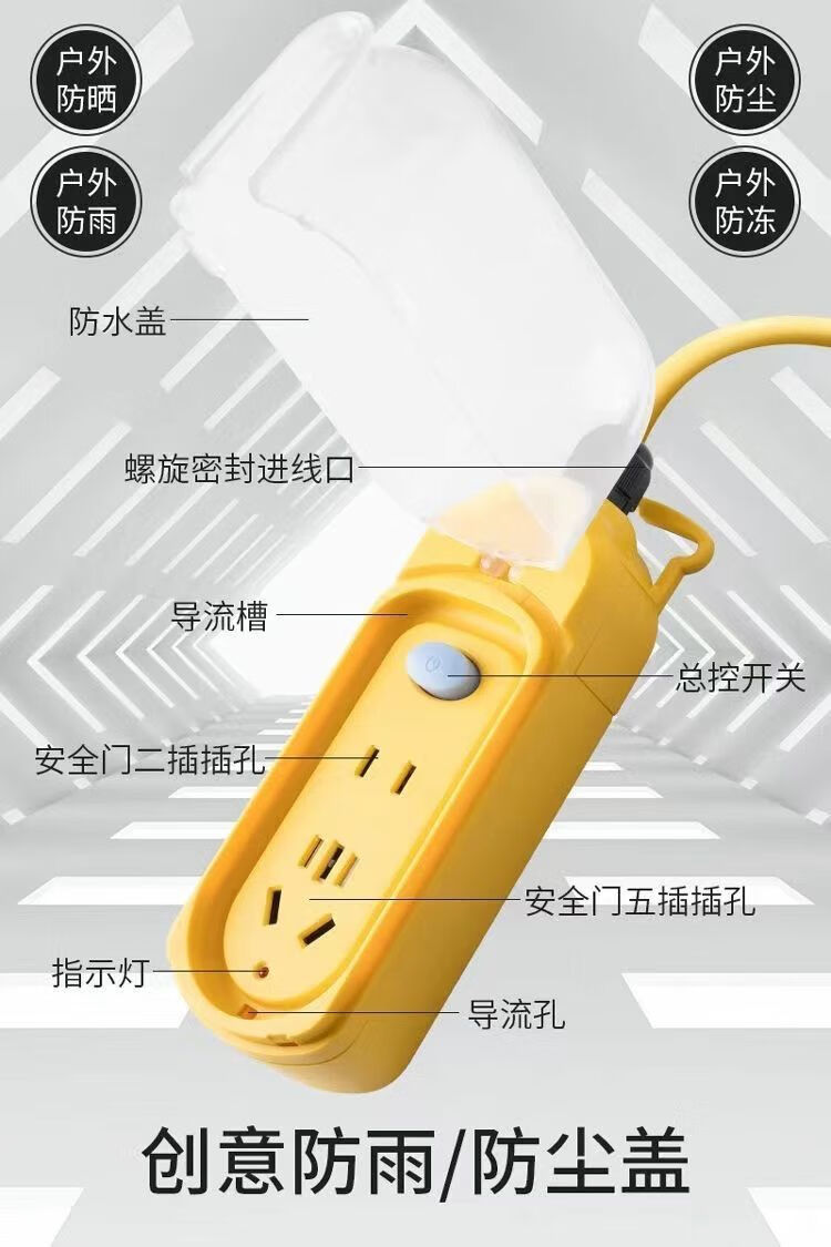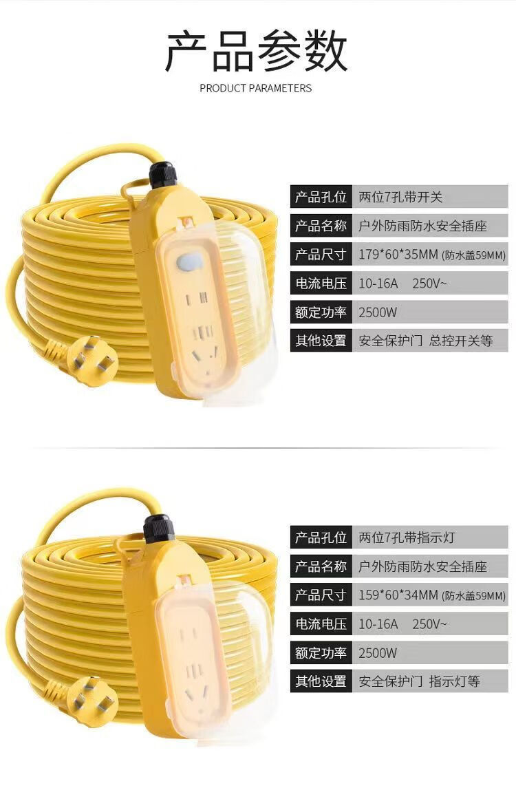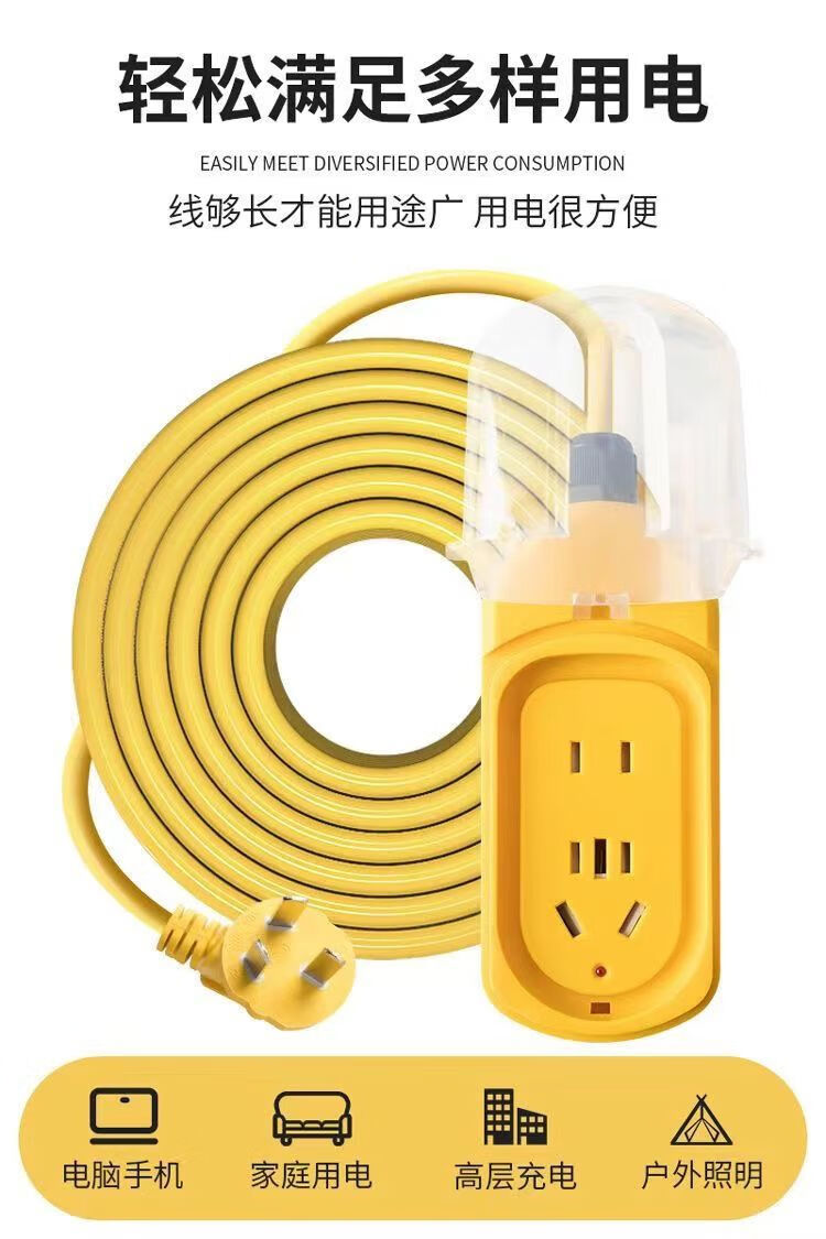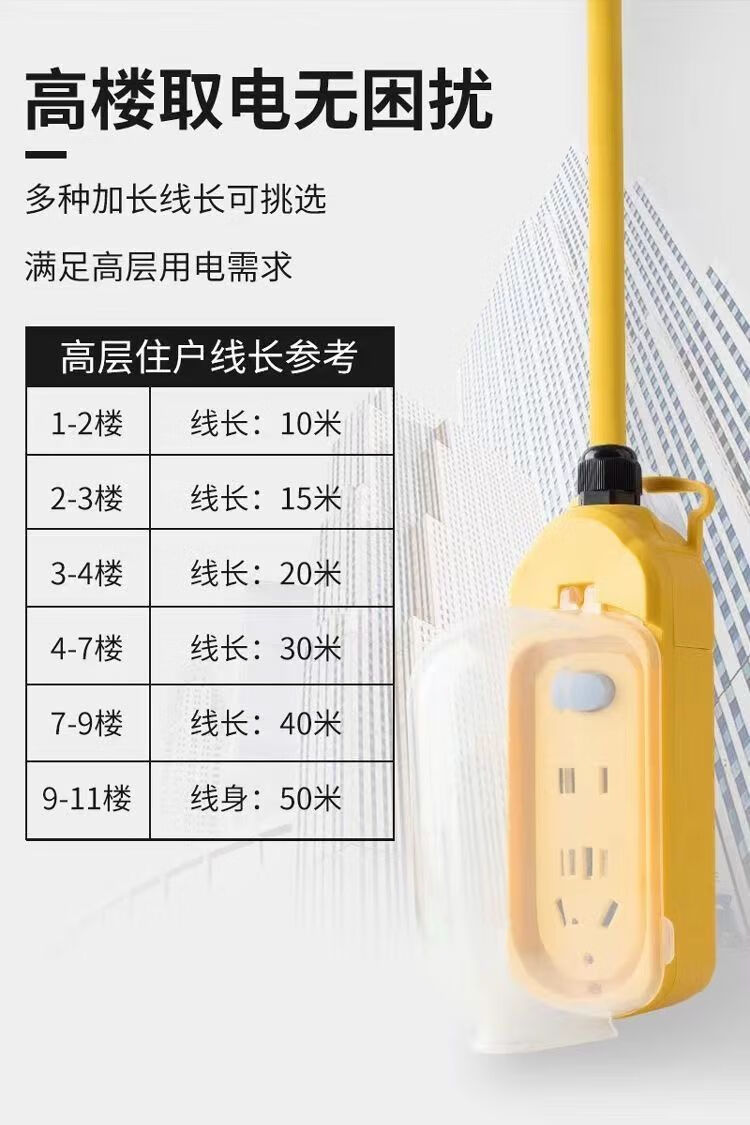 Electric vehicle charging extension cord with long socket row for outdoor household waterproof seat for high-rise buildings with long meter board row and extra long connection board 24 new rainproof sockets with indicator lights and switches 10 meters/1-2 floors 1 hour left during the event