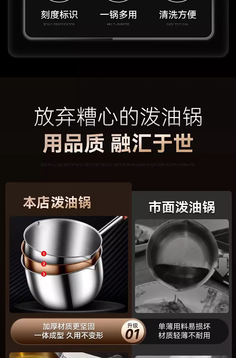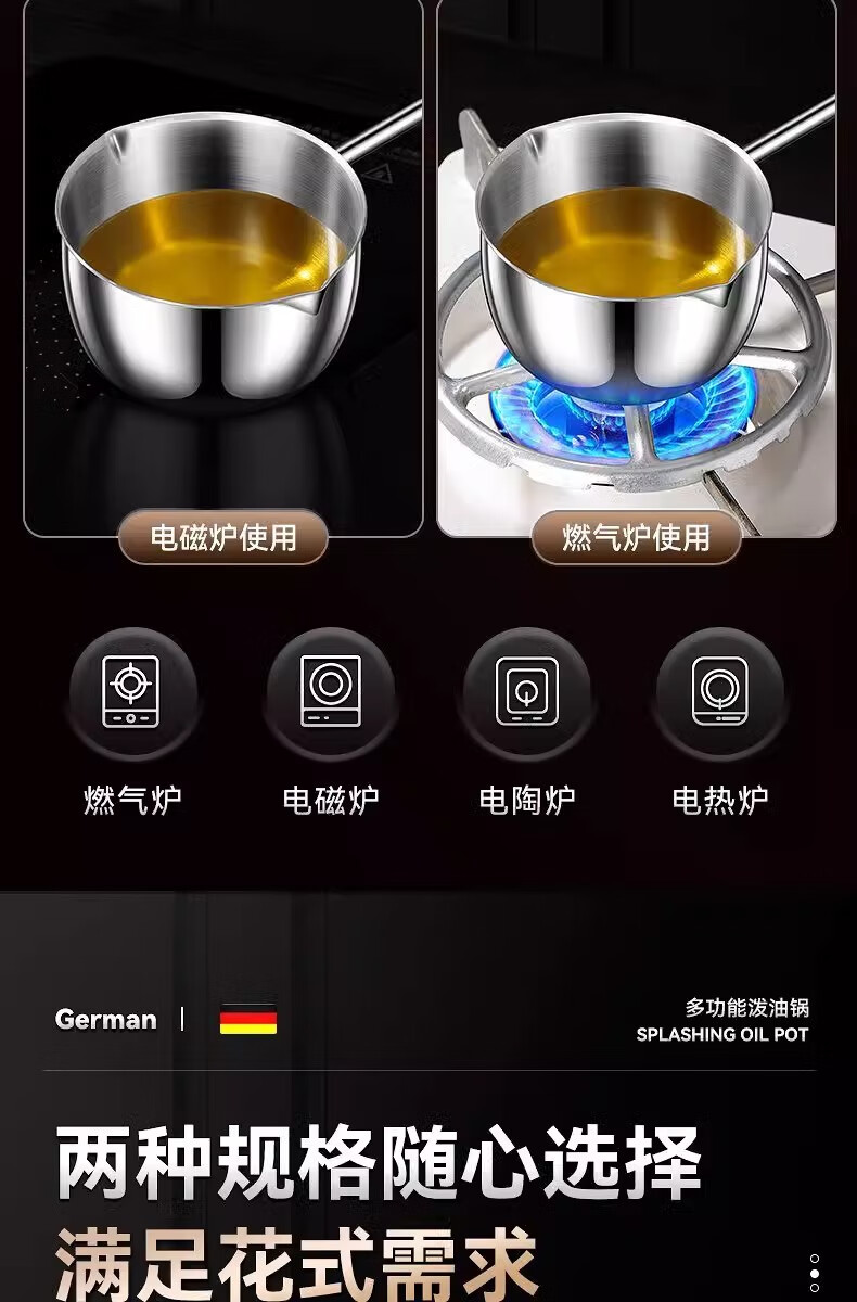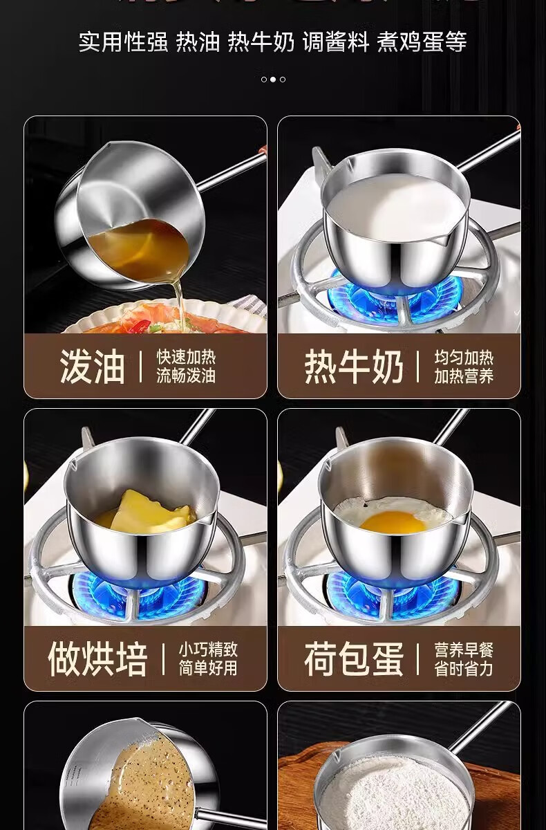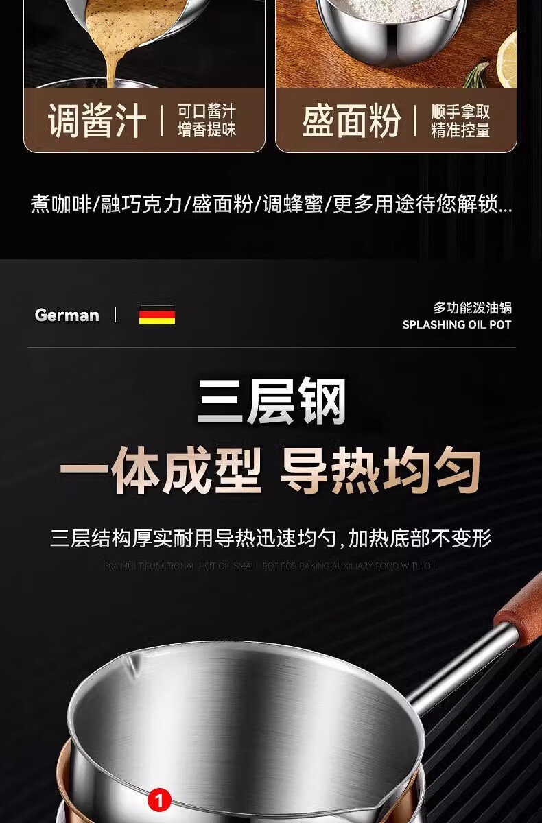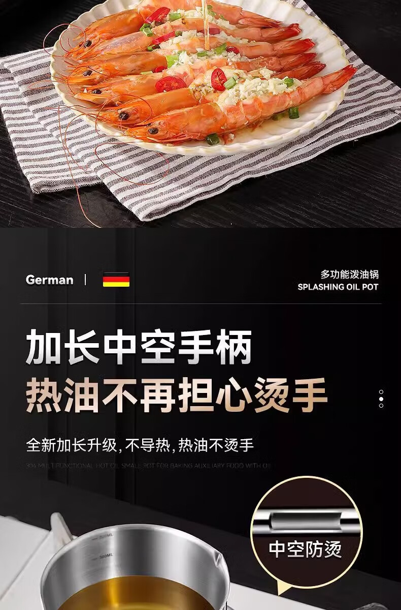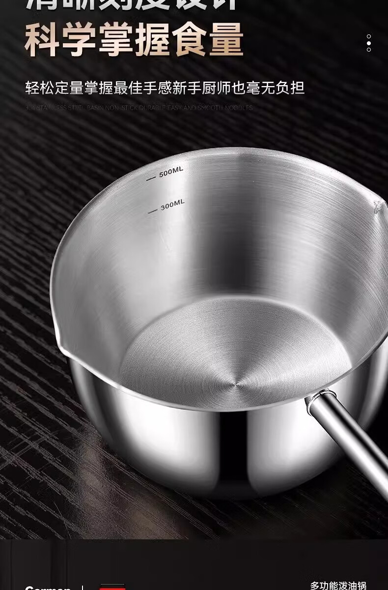 Hot oil small pot, stainless steel mini small pot, extended wooden handle, special tool for burning oil and pouring oil, uncoated, small size 300ml, extended handle, not hot