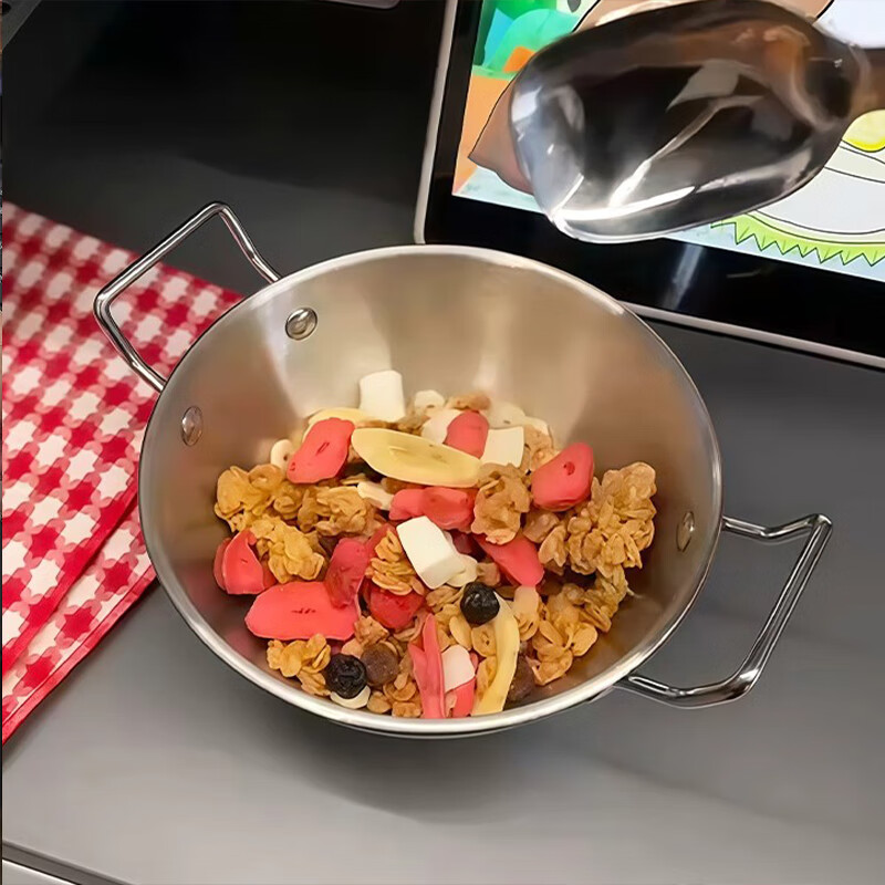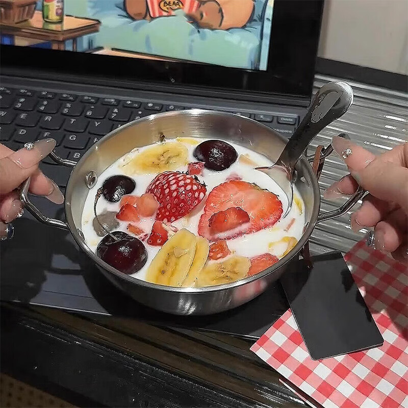 Stainless steel snack bowl, food supplement bowl, instant noodle bowl, anti-fall large creative personalized bowl, instant noodle bowl, fruit bowl, spoon, 13cm binaural bowl + capibala spoon