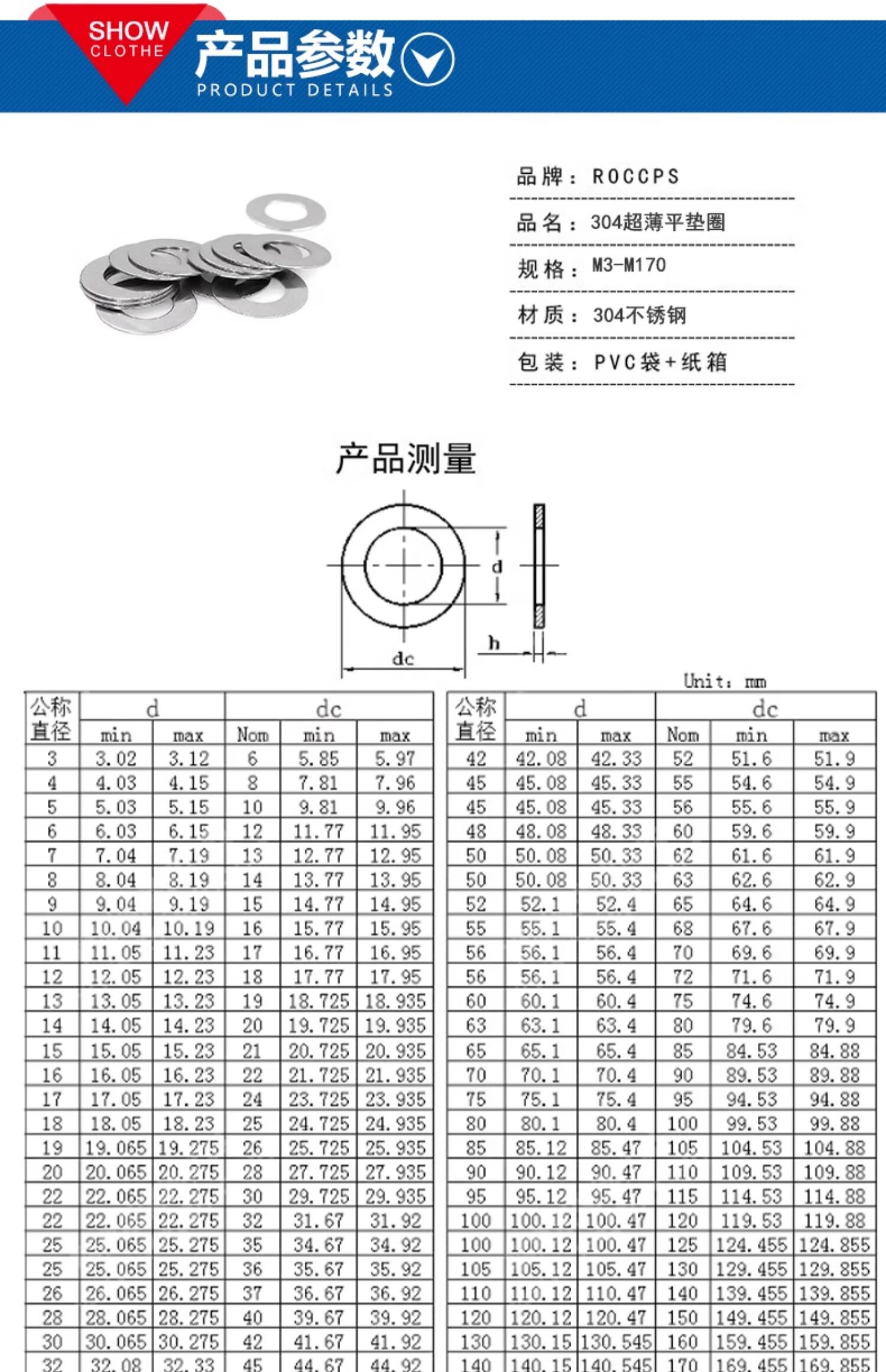 OLOEY304 stainless steel ultra-thin metal gasket 0.1/0.2m adjustment gap gasket round thin flat gasket 3m17m50 Undertake non-standard gaskets of various materials and sizes