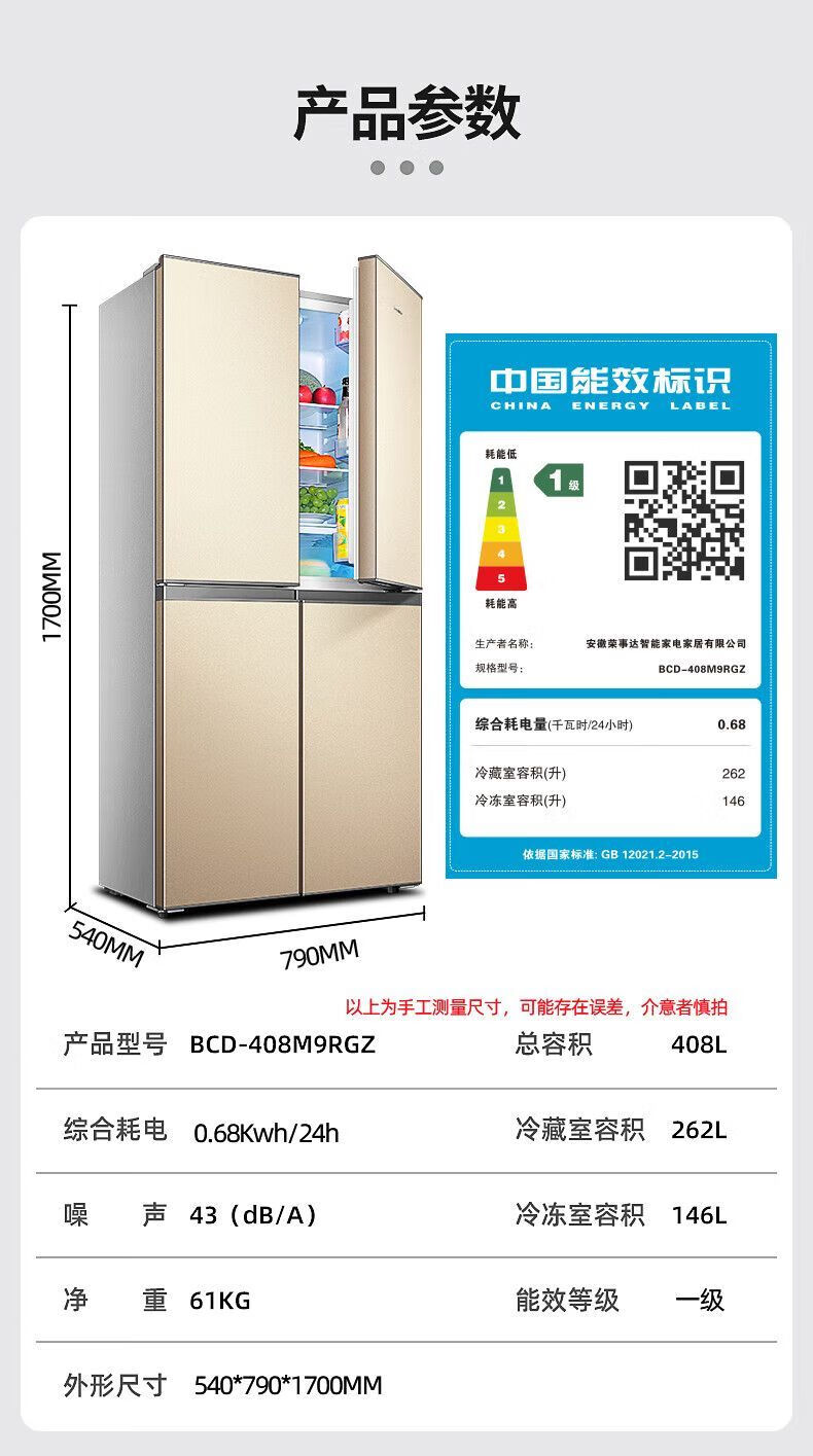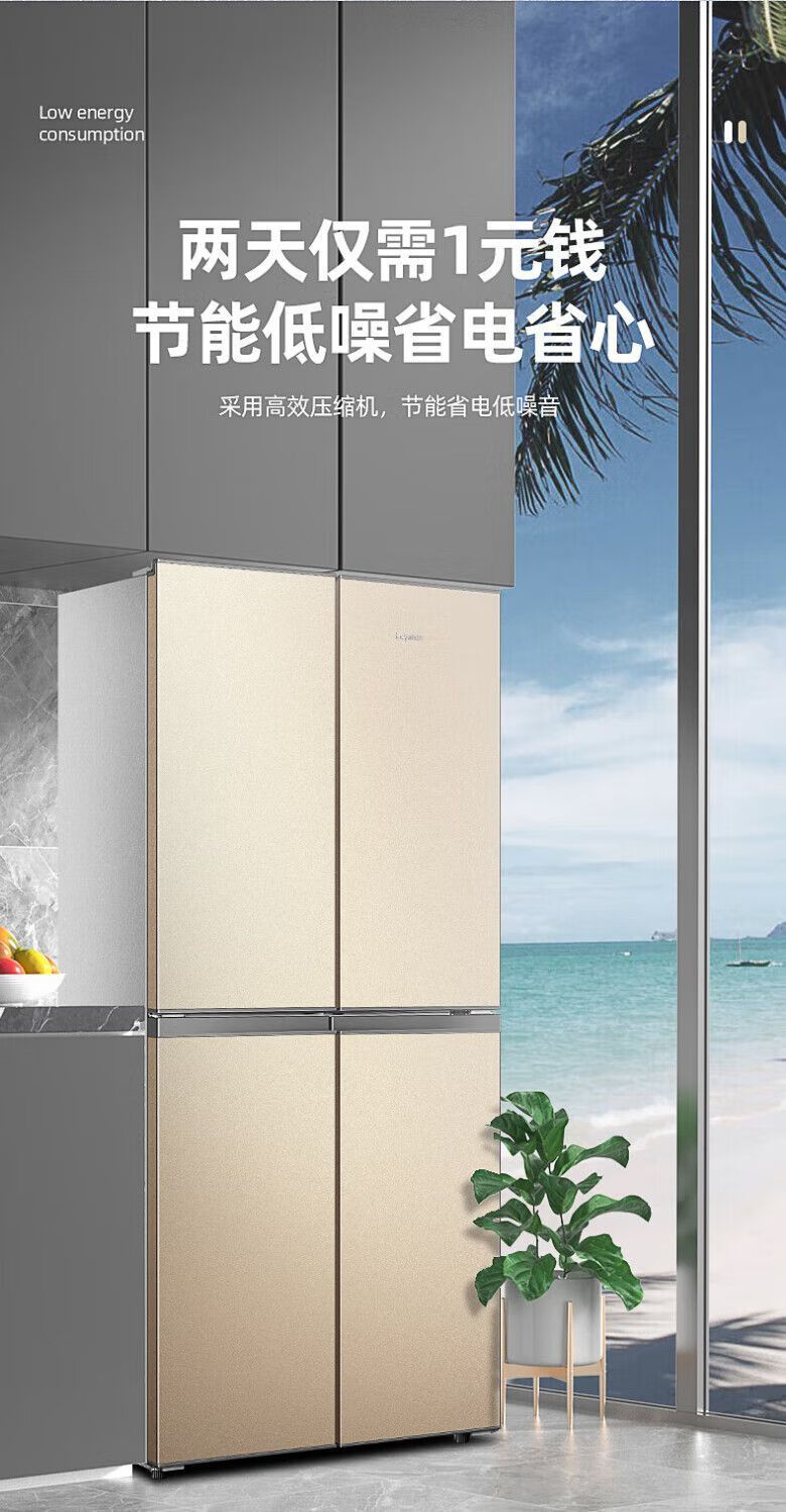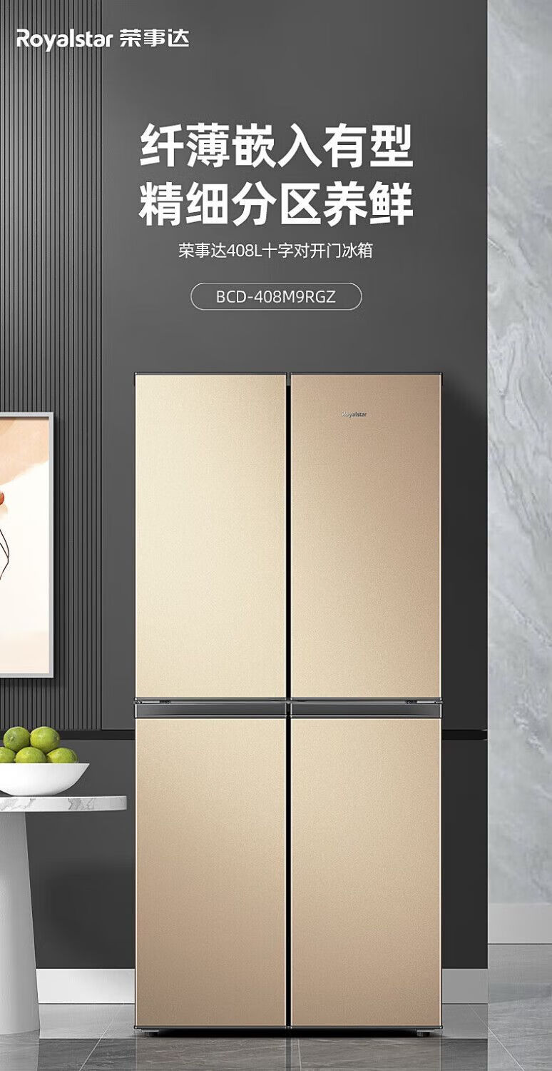 Royalstar 408/301 upgraded to the first level energy efficiency ultra-thin household refrigerator cross-door large capacity French multi-door four-door slim body can be embedded silent low noise energy saving 408 liters of gold first level energy efficiency and power saving 54 cm ultra-thin embedded
