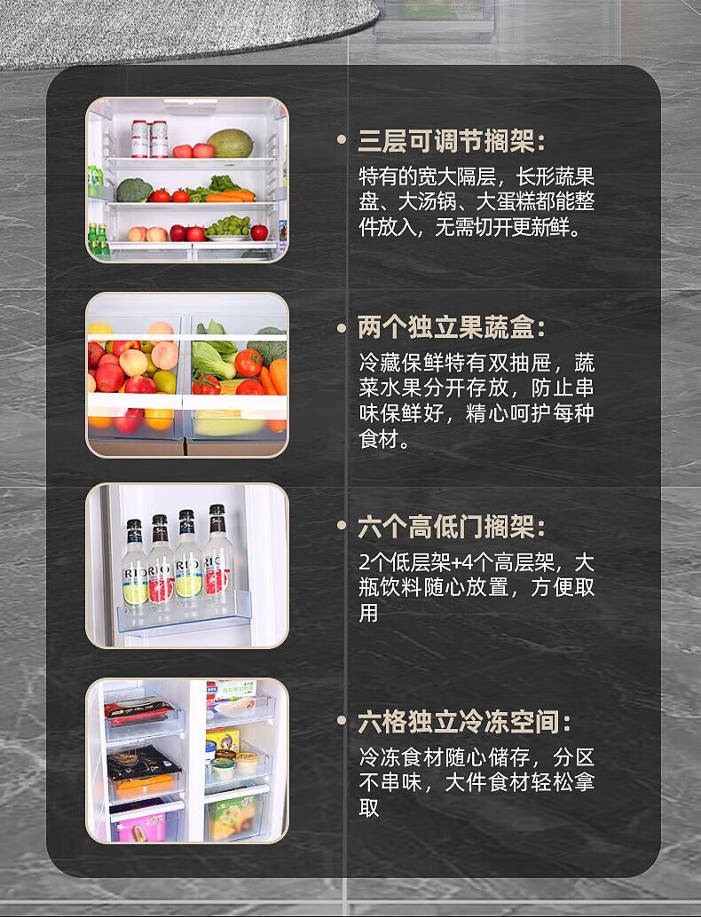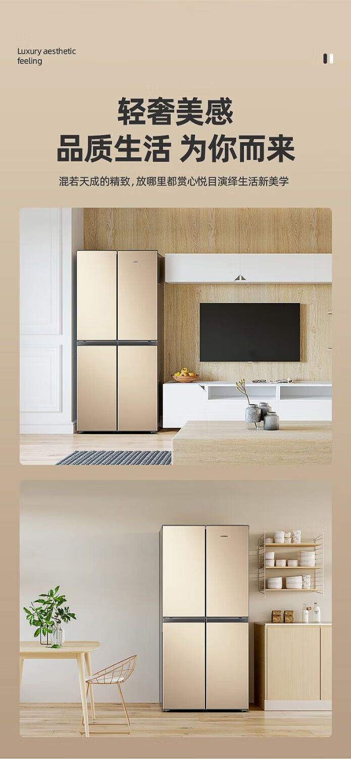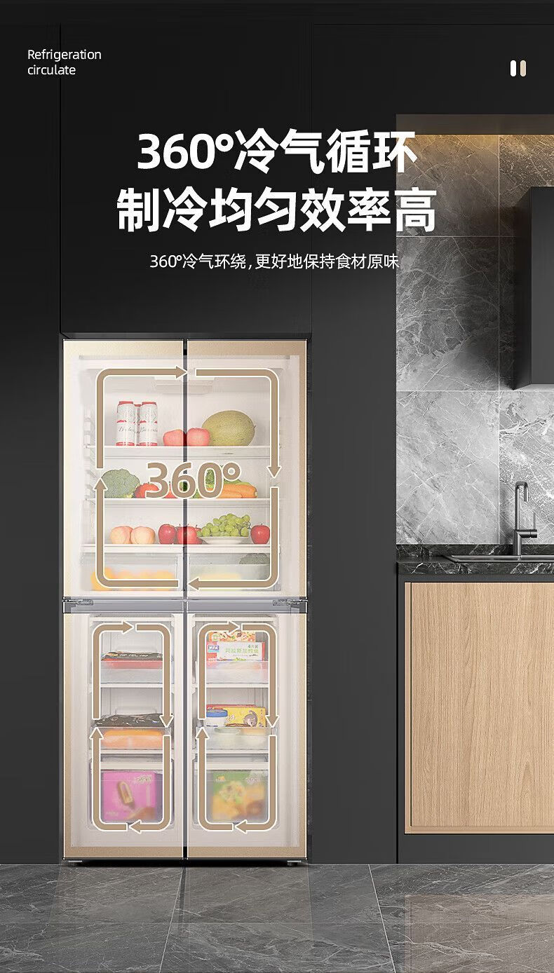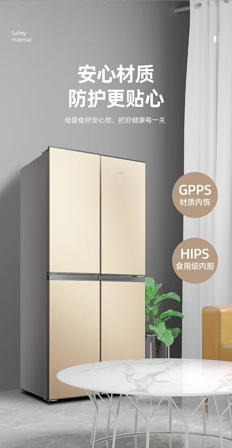 Royalstar 408/301 upgraded to the first level energy efficiency ultra-thin household refrigerator cross-door large capacity French multi-door four-door slim body can be embedded silent low noise energy saving 408 liters of gold first level energy efficiency and power saving 54 cm ultra-thin embedded