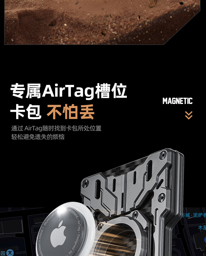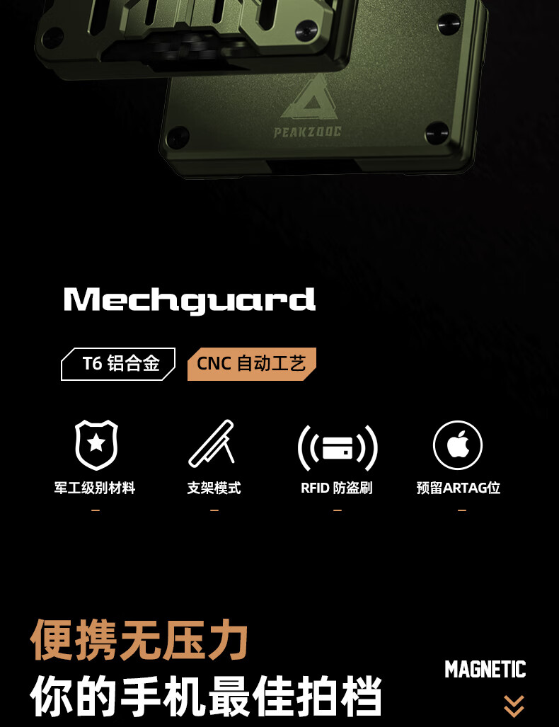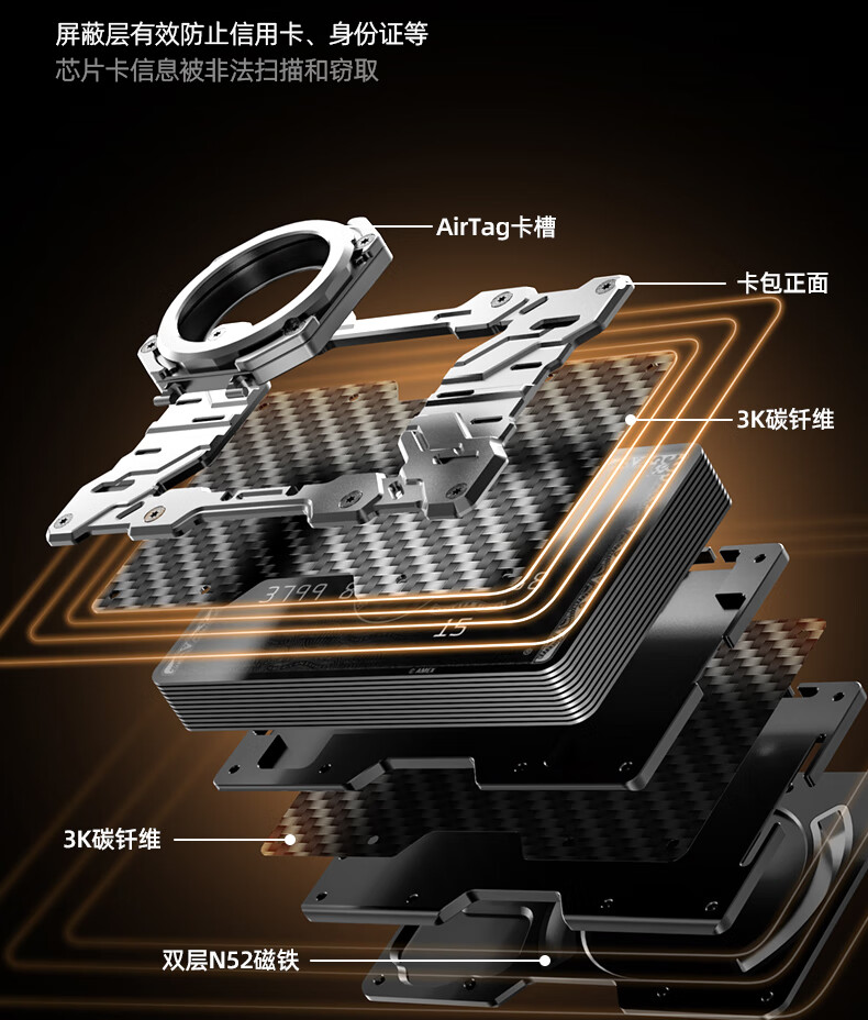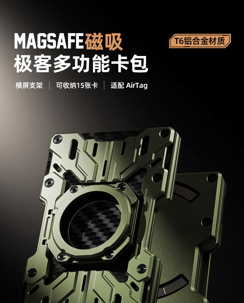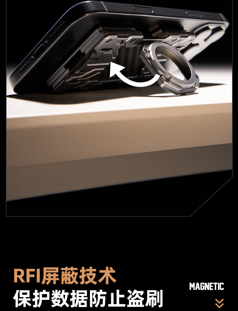 PEAKZOOC Carbon Fiber Anti-Theft Brush Multifunctional Magnetic Metal Card Holder MagSafe Magnetic Holder Men's Document Storage Card Bag Outdoor Men's Wear Silver Card Belt Lanyard Xuanwu Black MagSafe Magnetic Anti-Theft Brush