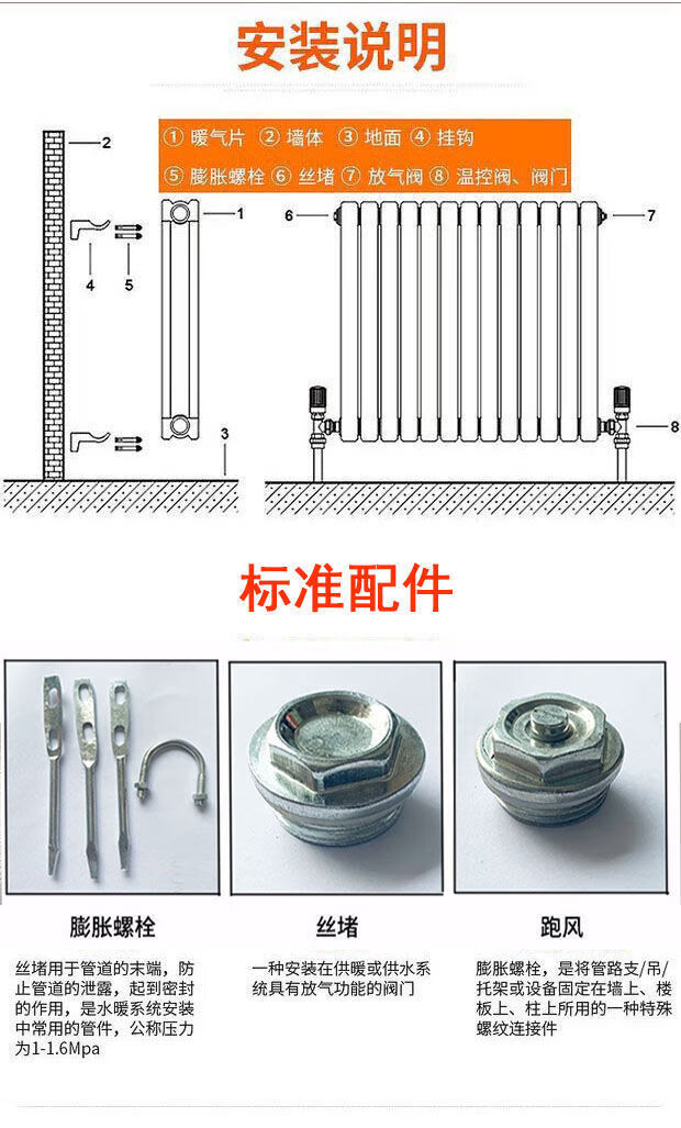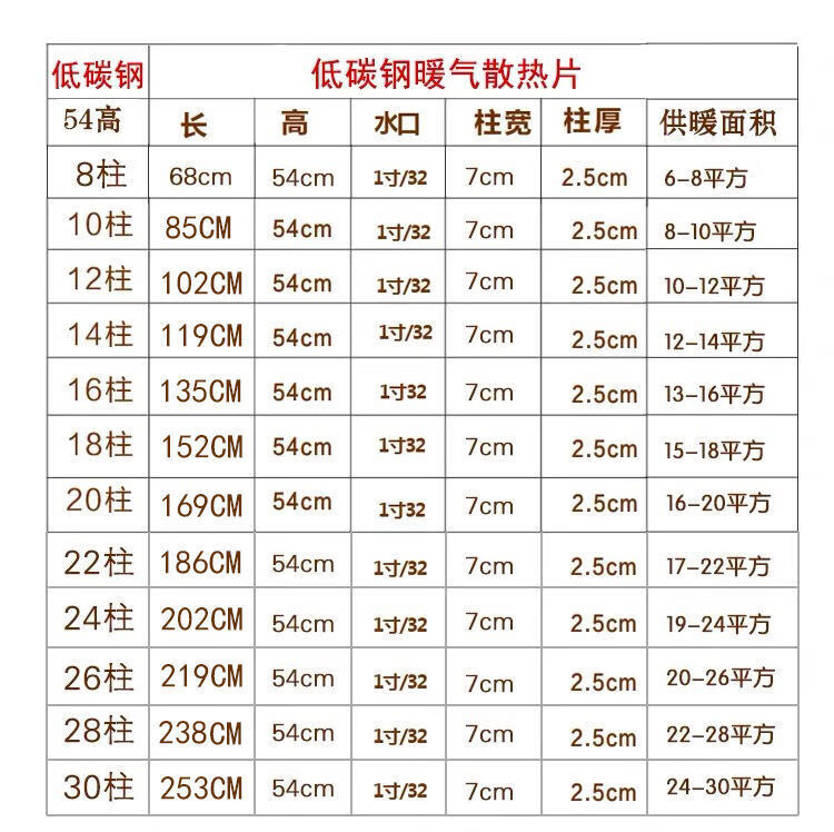 Radiator household low carbon steel radiator steel wall-mounted thickened heating radiator 7025 type radiator carbon steel 6 columns length and height 54cm 510mm
