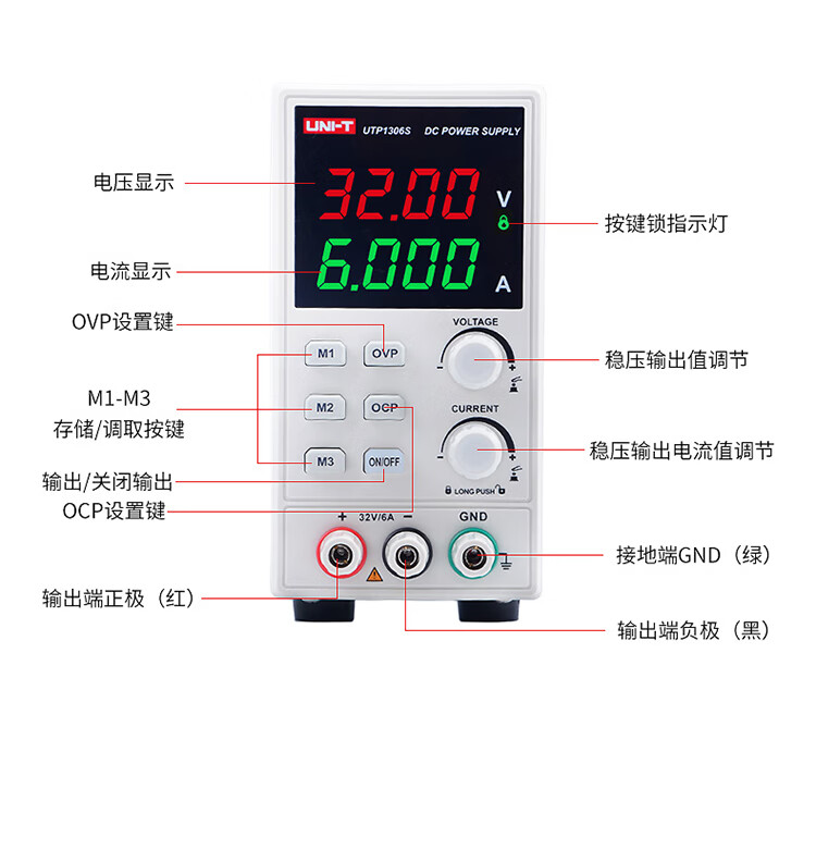 Chint (CHNT) UTP1306S digital display adjustable DC regulated power supply 32V6A5 high-precision milliamp level 13 UTP1305S standard switching power supply 30V5A