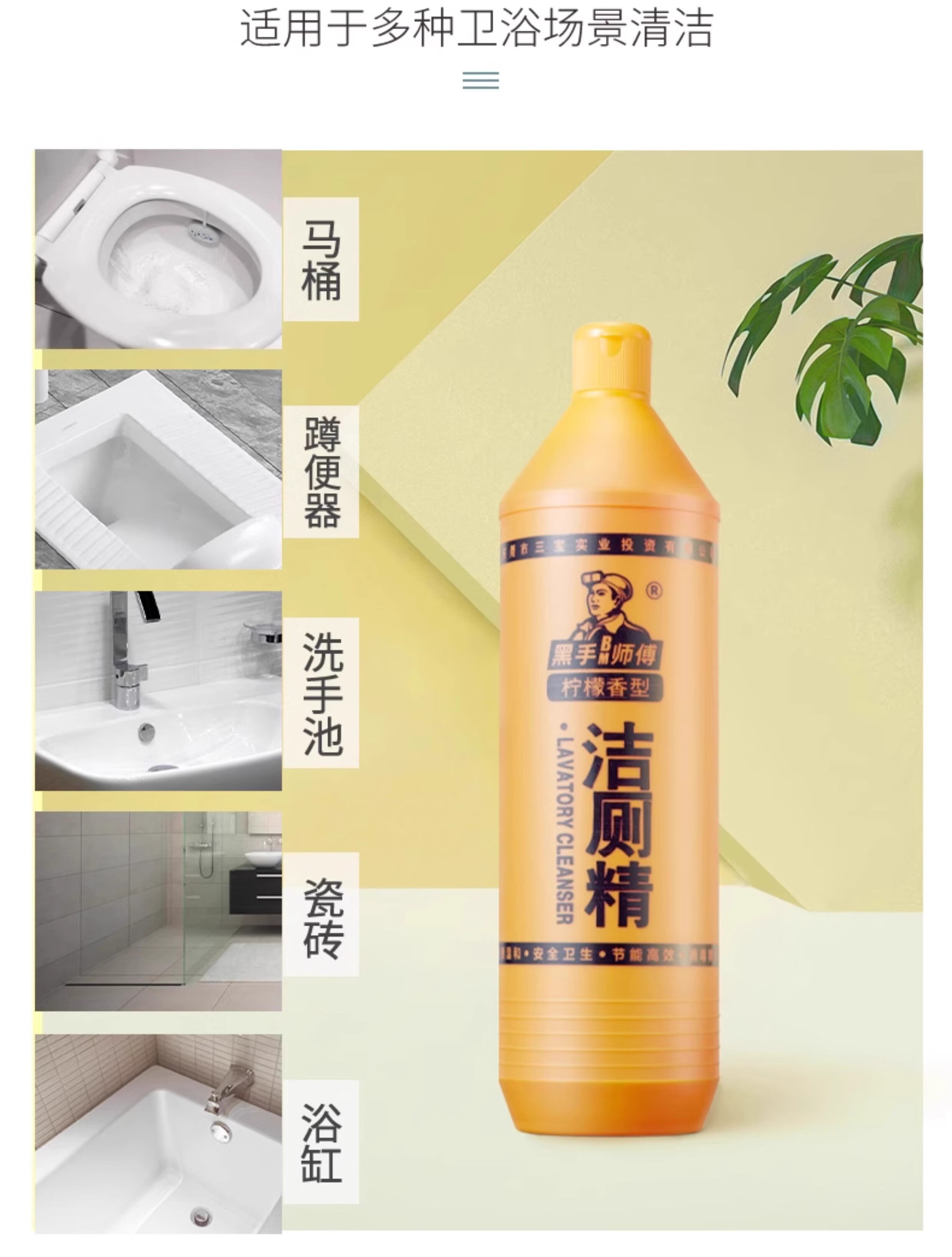 Black Hand Master Toilet Cleaning Essence squat toilet toilet cleaner ceramic floor cleaner decontamination and deodorization 900ml toilet cleaning essence 5 bottles