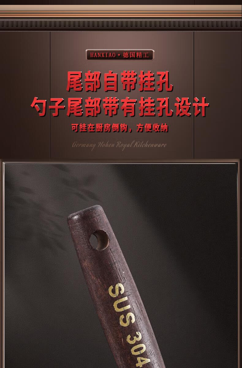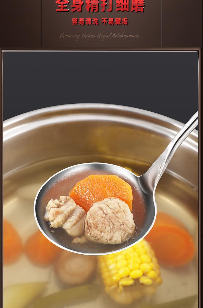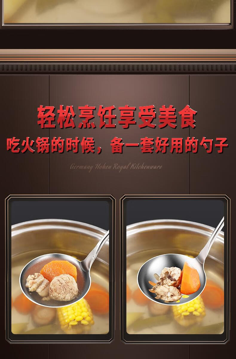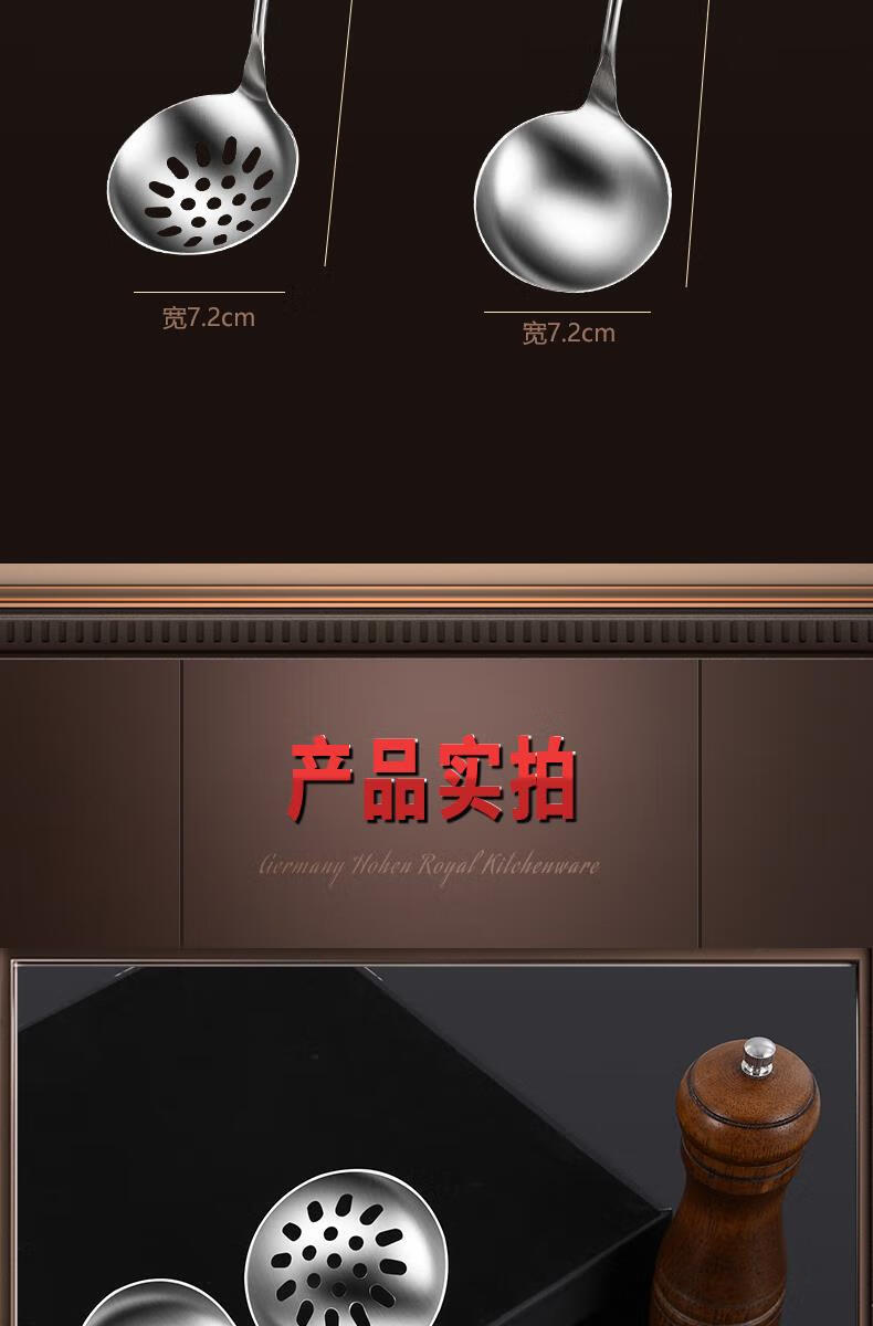 Chuangjingyixuan Food 304 Stainless Steel Hot Pot Spoon Colander Set Household Wooden Handle Small Spoon Special for Soup Commercial Large 304 Stainless Steel Hot Pot Spoon Set Solid Wood Handle