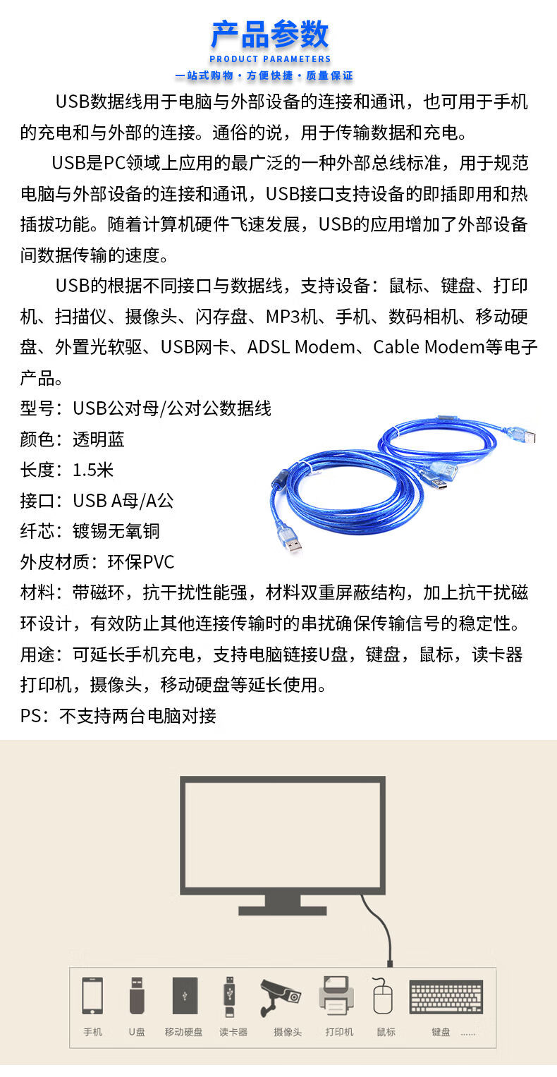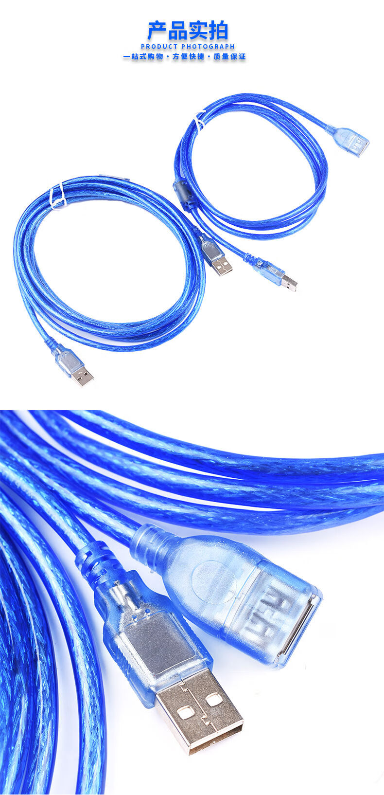 USB2.0 data cable male to female male to male extension cable 0.5m/3/5/10m shielded magnetic ring blue blue line male to male 1.5m