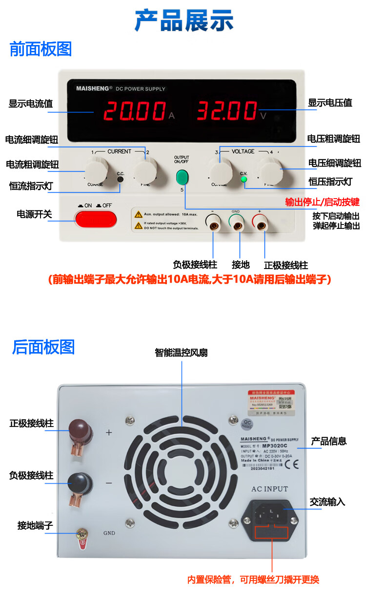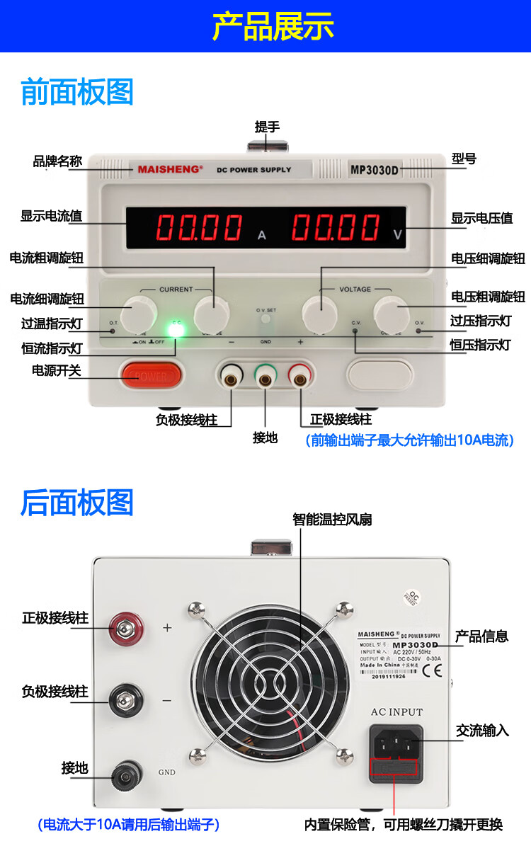 MAISHENGMP3020D MP3030D MP6010D DC regulated power supply adjustable 0-30 MP5001C (500V1A/500W) encoder precision