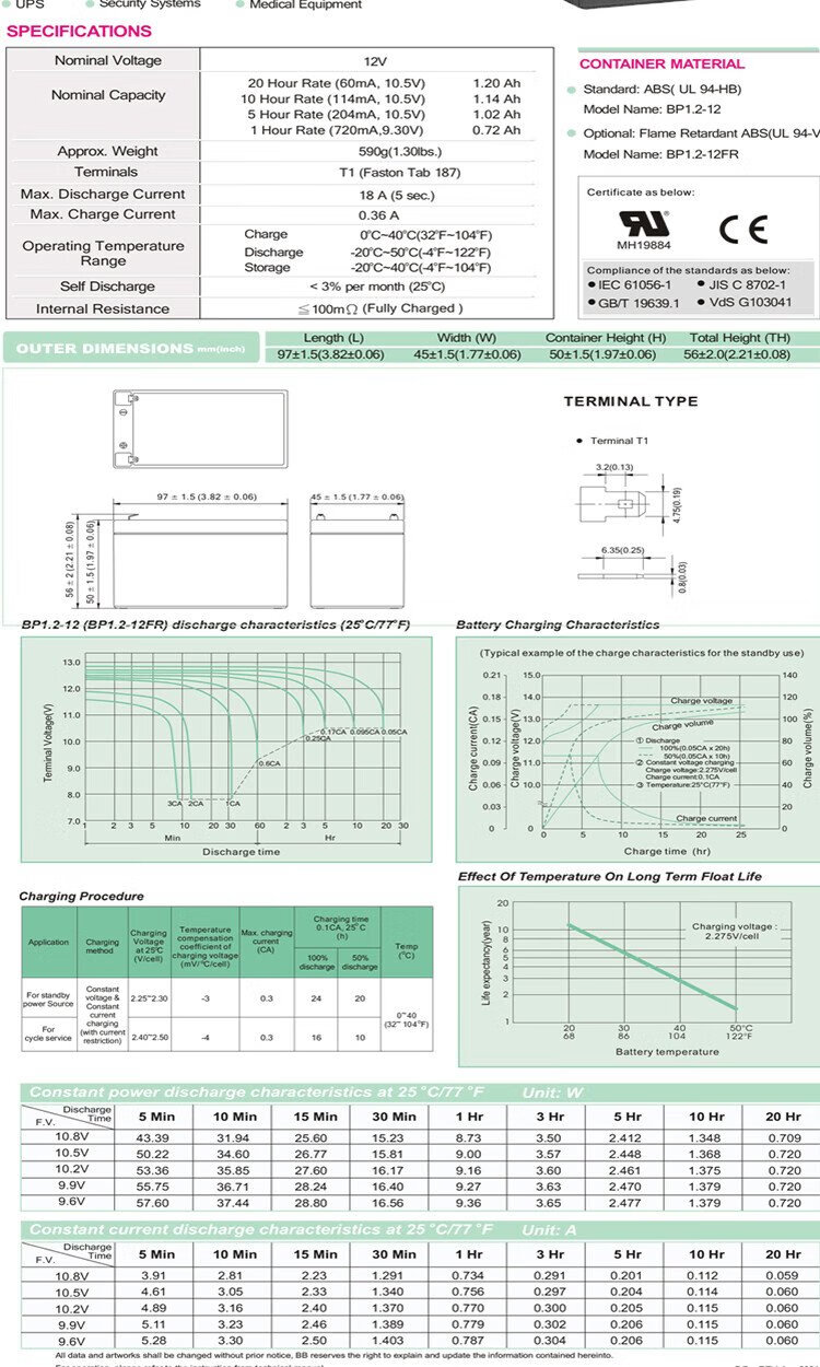 B.B.BATTERY Meimei Battery BP1.2-12 UPS Battery HB Flame Retardant Black 12V1.2Ah