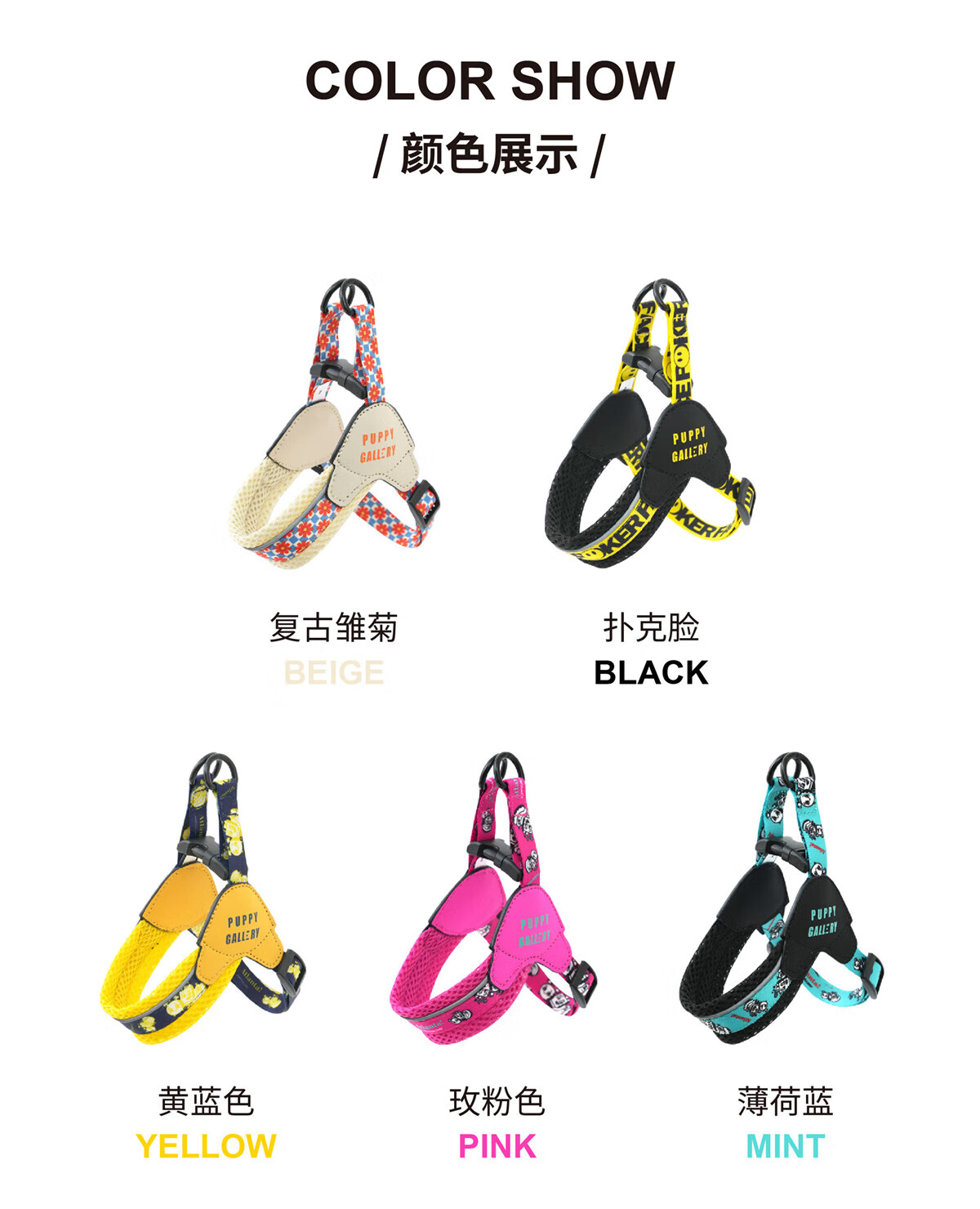 PUPPY GALLERY South Korea imported fun dog harness dog leash dog walking rope pet puppy vest style small and medium-sized dogs Poker face No. 4