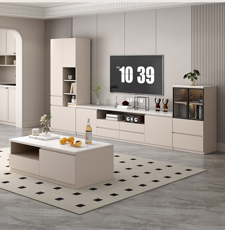 Aimuge includes installation solid wood TV cabinet floor-standing coffee table combination living room 2025 new storage cabinet TV cabinet 160*40*60cm double door four drawer TV cabinet