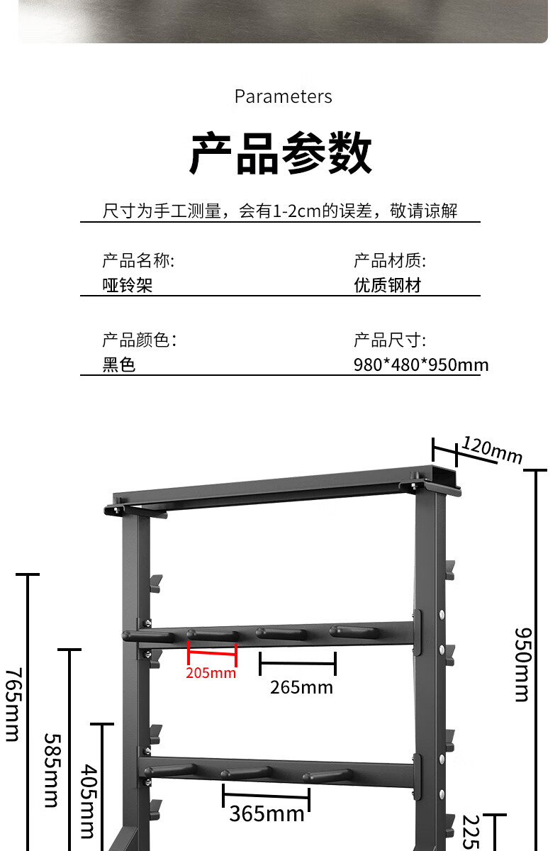 Kaniu household commercial storage rack fitness solid men's equipment placement rack adjustable bracket dumbbell bracket black