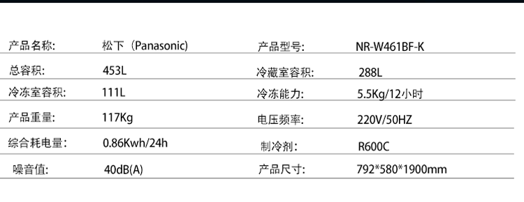 Panasonic NR-W461BF-K multi-door built-in refrigerator, ultra-thin 453 liters, Nanoyi dual-cycle automatic ice making, tail cargo machine, slight defects, black