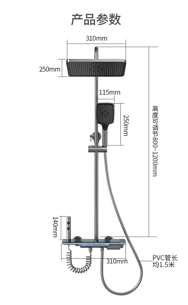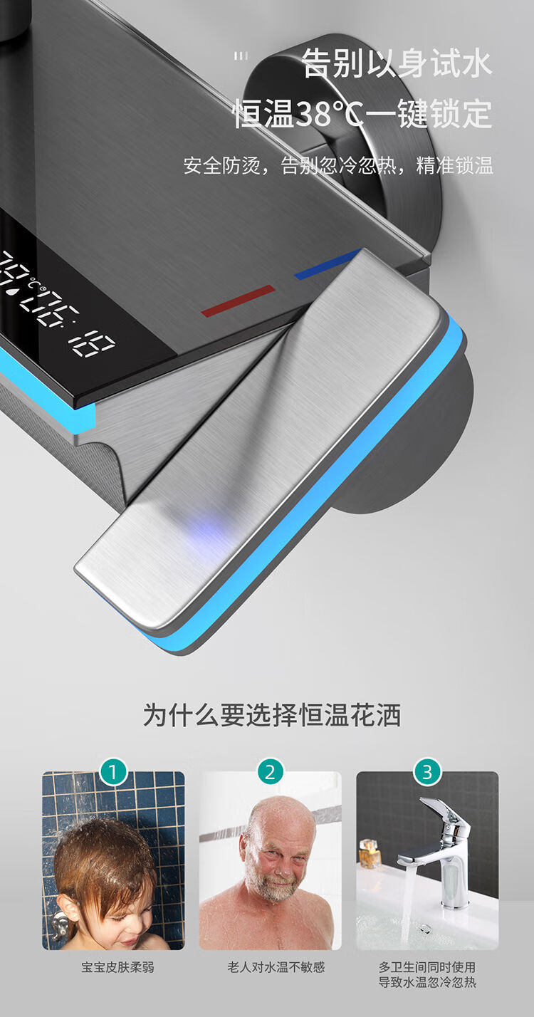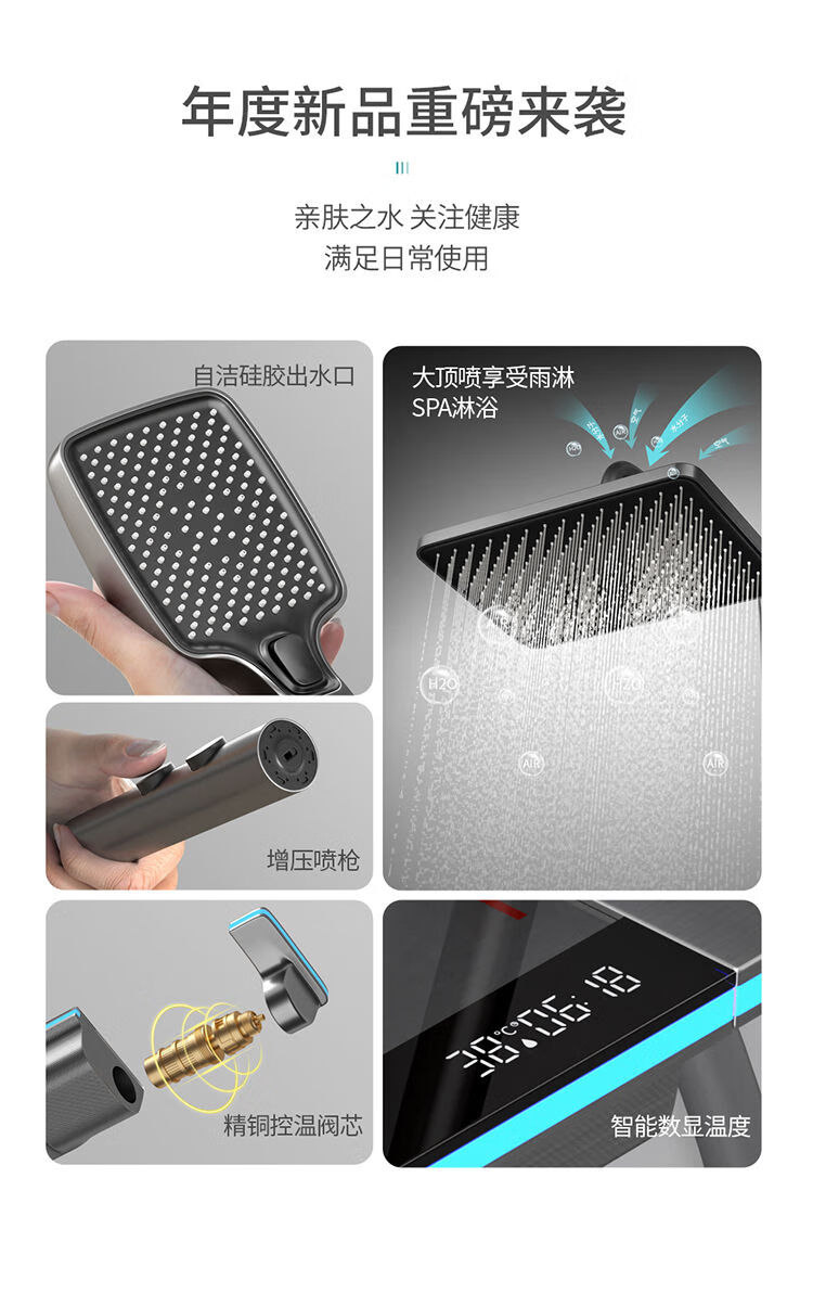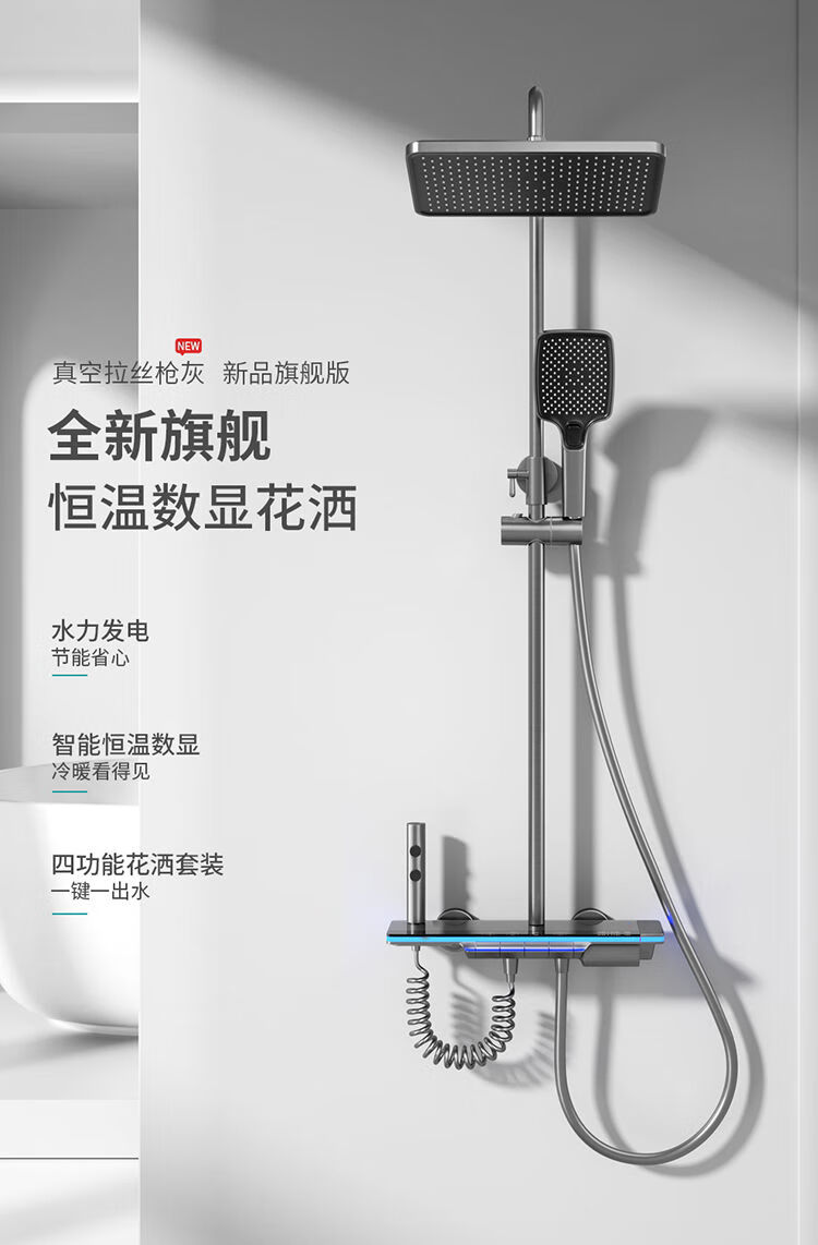 YWZR official shower head set gray shower head constant temperature supercharged shower head flagship super large atmosphere light PVD water ferry (gun