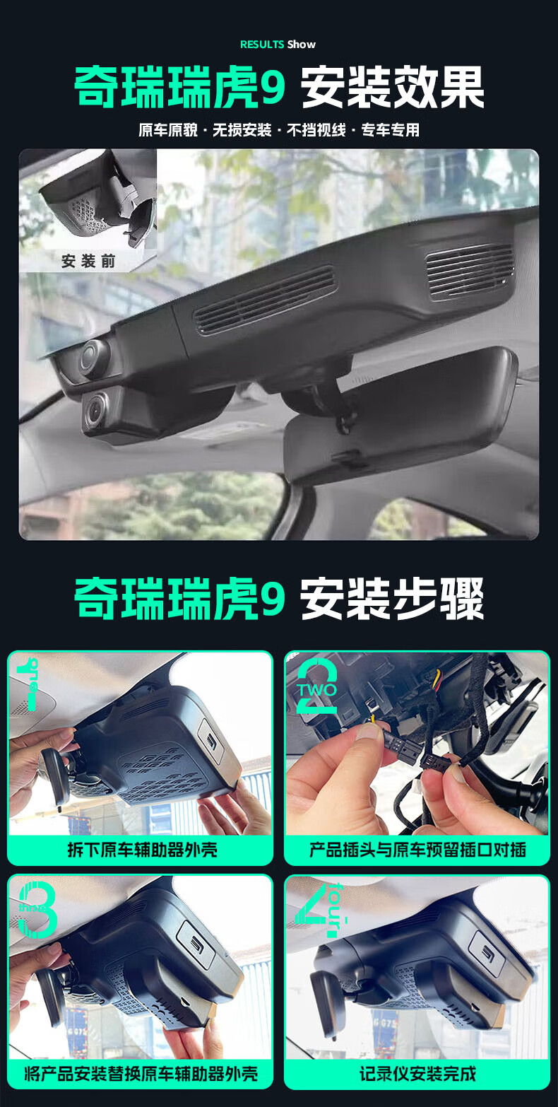 Jinyuzi Chery Tiggo 9 driving recorder HD wire-free original hidden installation-free front and rear dual recording dedicated CDM 2026 model Tiggo 9/Tiggo 9X ultra-high definition single lens 2160P+64G