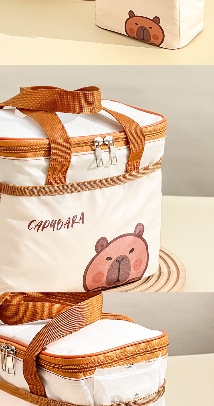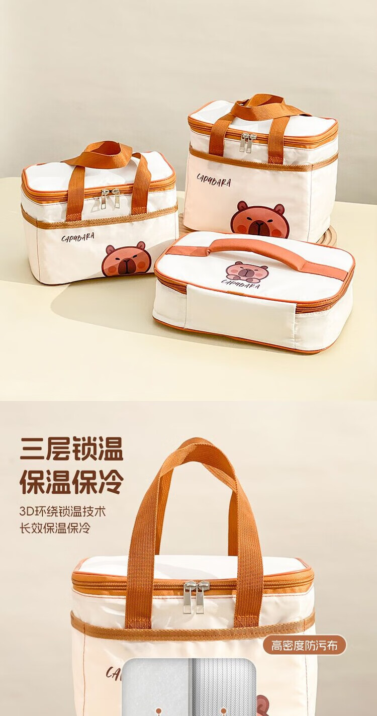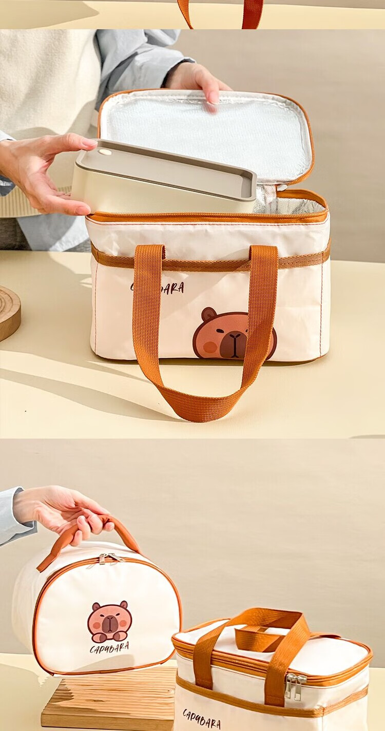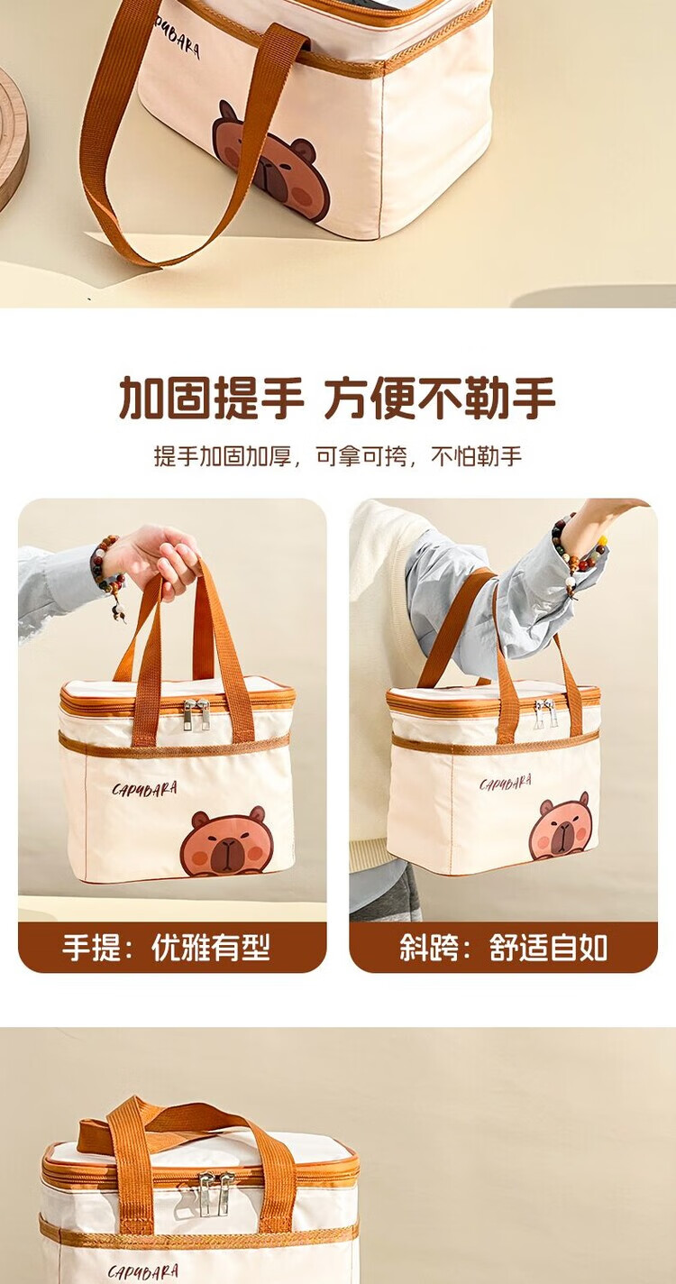 Kapibara Lunch Box Bag Handbag Insulated Thickened Aluminum Foil Lunch Box Bag Student Office Worker Oxford Cloth Lunch Bag Beige Dinner Plate Insulated Bag No Specifications