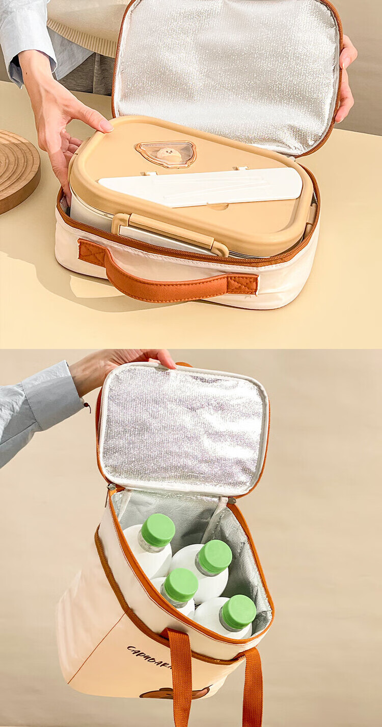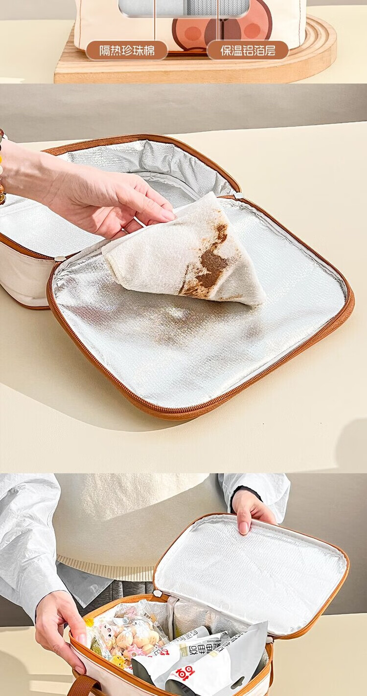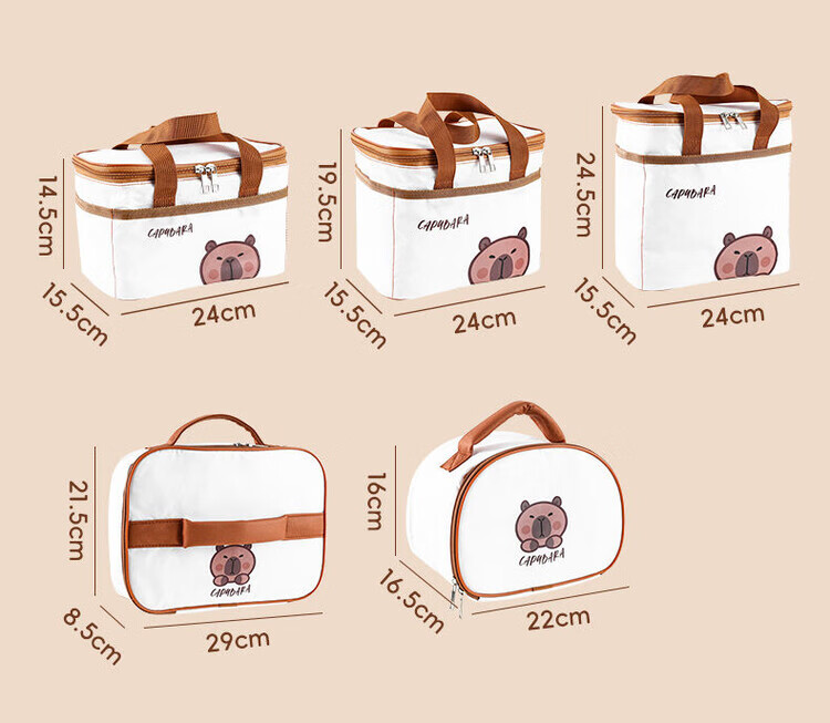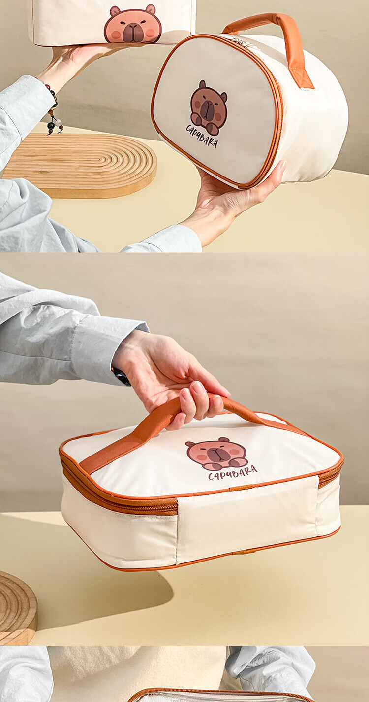 Kapibara Lunch Box Bag Handbag Insulated Thickened Aluminum Foil Lunch Box Bag Student Office Worker Oxford Cloth Lunch Bag Beige Dinner Plate Insulated Bag No Specifications