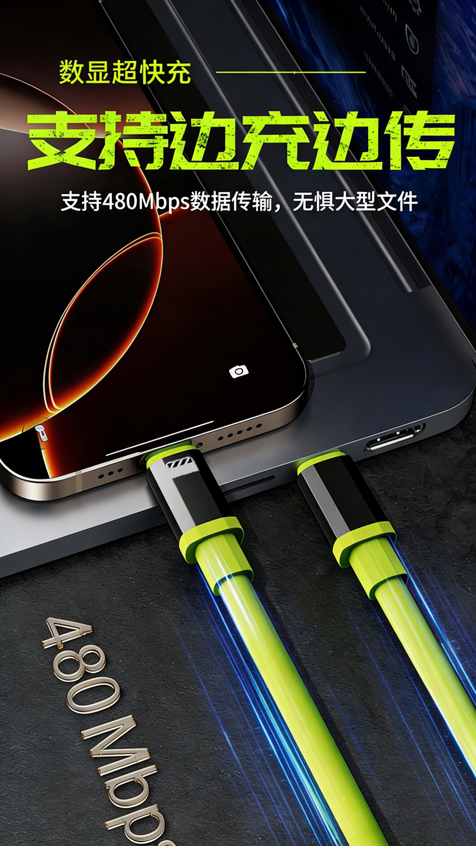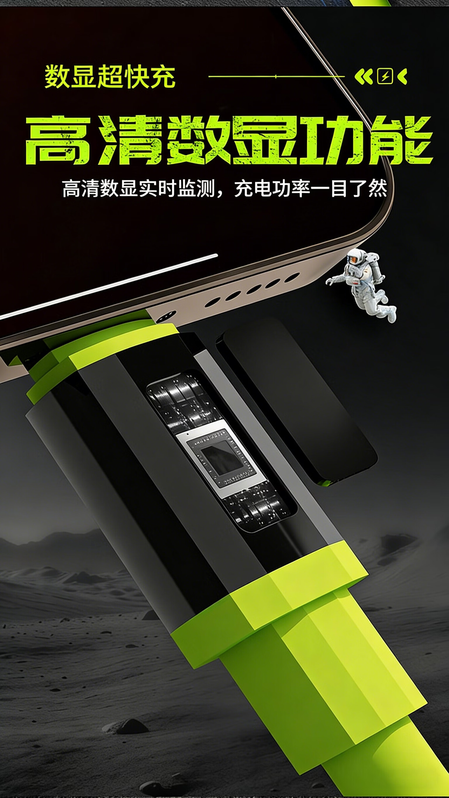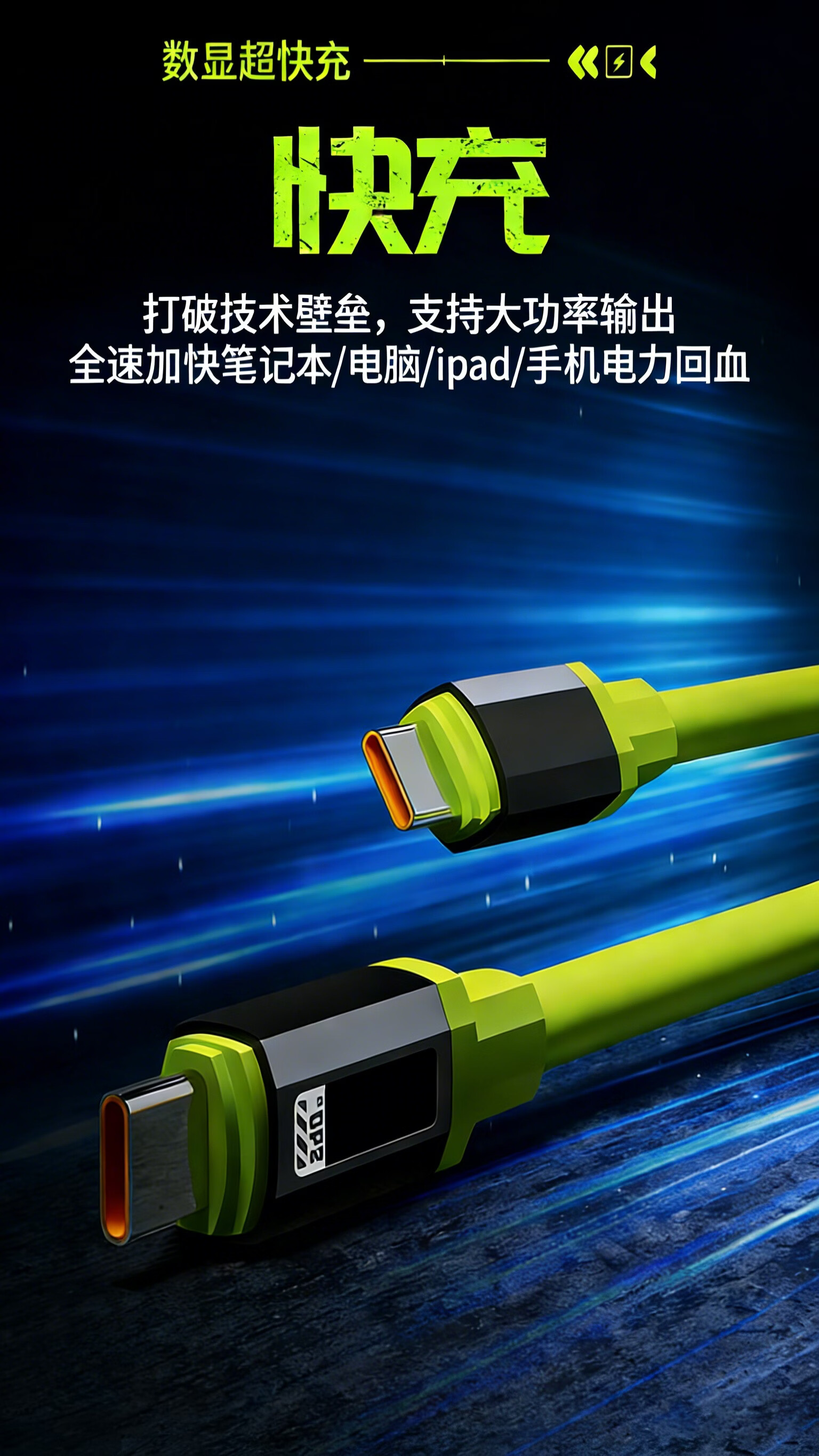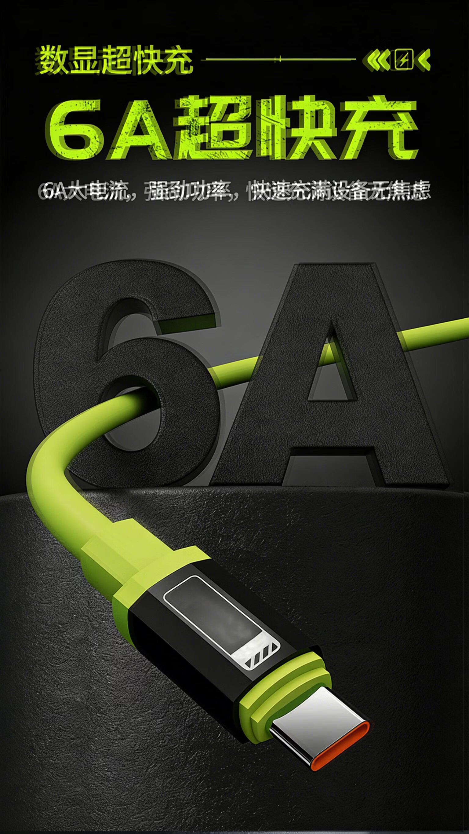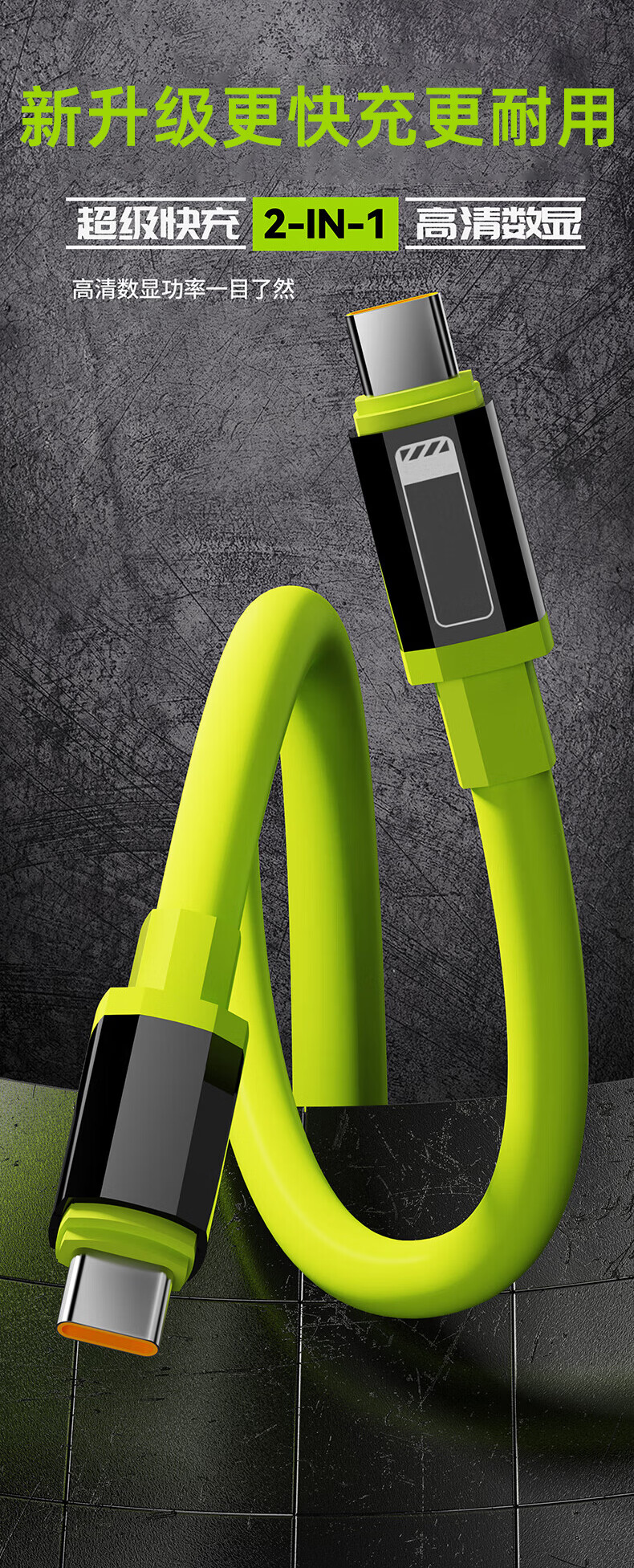 Chinese Type-c charging cable super flash charging data cable HD screen digital display high power Typec data cable suitable for Apple and Huawei mobile phones and tablets double-head car 6A fast charging cable digital display dual Type-C flash charging silicone cable - 1.5 meters