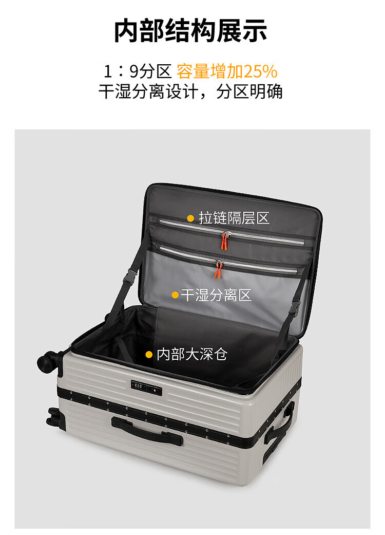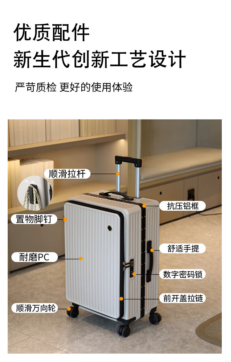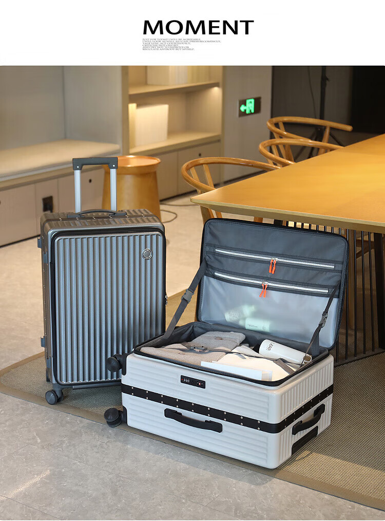 Traveler suitcase, check-in-free, boarding suitcase, extra-large capacity side-opening trolley case, password-protected suitcase, piano gray, side-opening flip-top aluminum frame - can seat 28 inches, checked abroad - 80% of people choose
