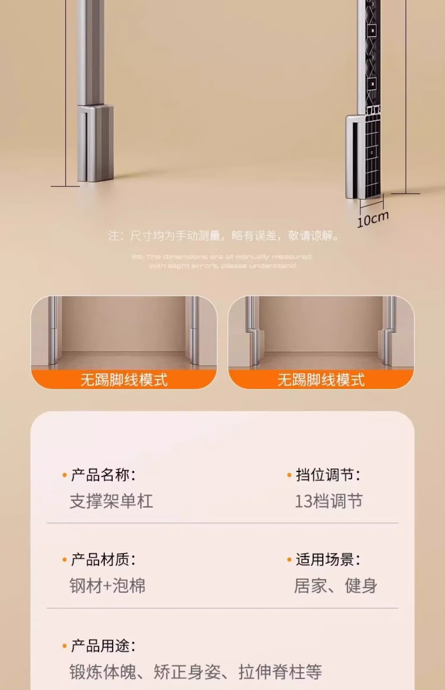 SPXINE floor-standing horizontal bar home pull-up device indoor single bar punch-free home waist protrusion hanging bar training fitness rack floor-standing horizontal bar 79-108cm with skirting