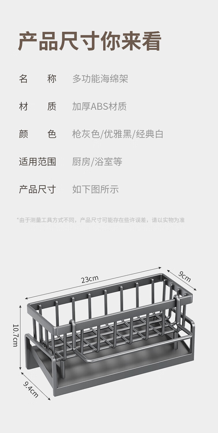 Kitchen sink storage pool dishwashing liquid rack dishwashing artifact steel wire rag sponge dishwashing sink plastic | gun gray + towel bar