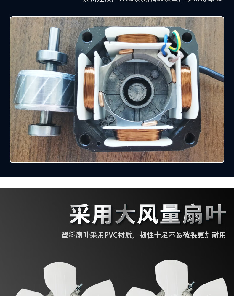 Double ball bearing freezer cooling fan freezer refrigerator fan motor condenser cover pole asynchronous pure copper wire pure copper double ball bearing motor 35W + fan blade