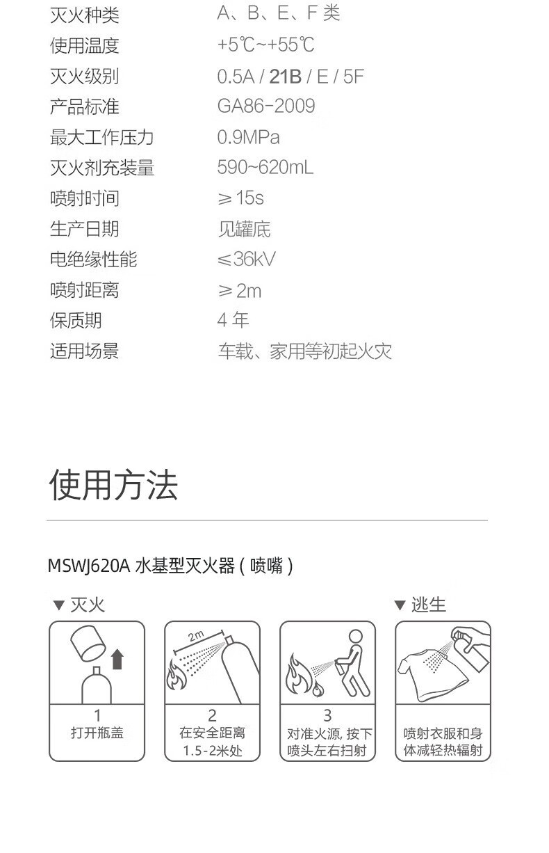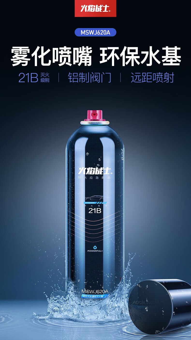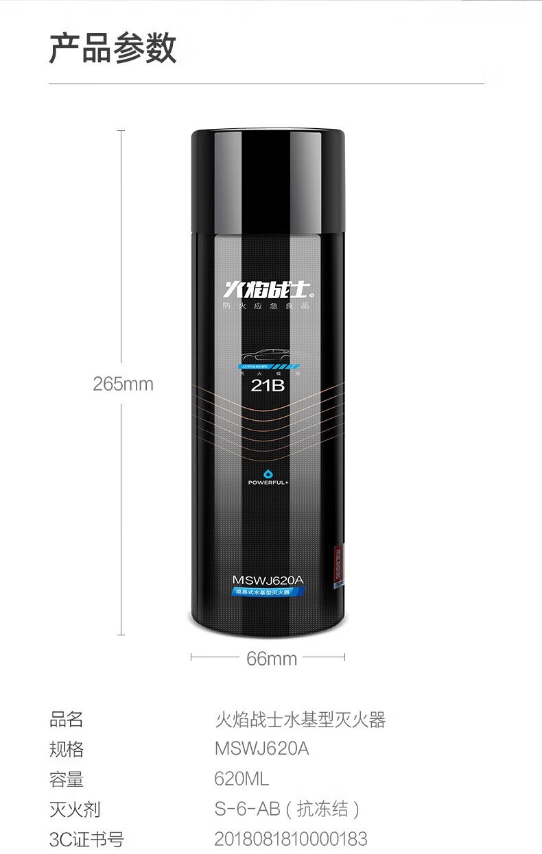 Water-based fire extinguisher portable small vehicle-mounted home kitchen fire certification annual inspection equipment 620ml water-based 21B powerful type