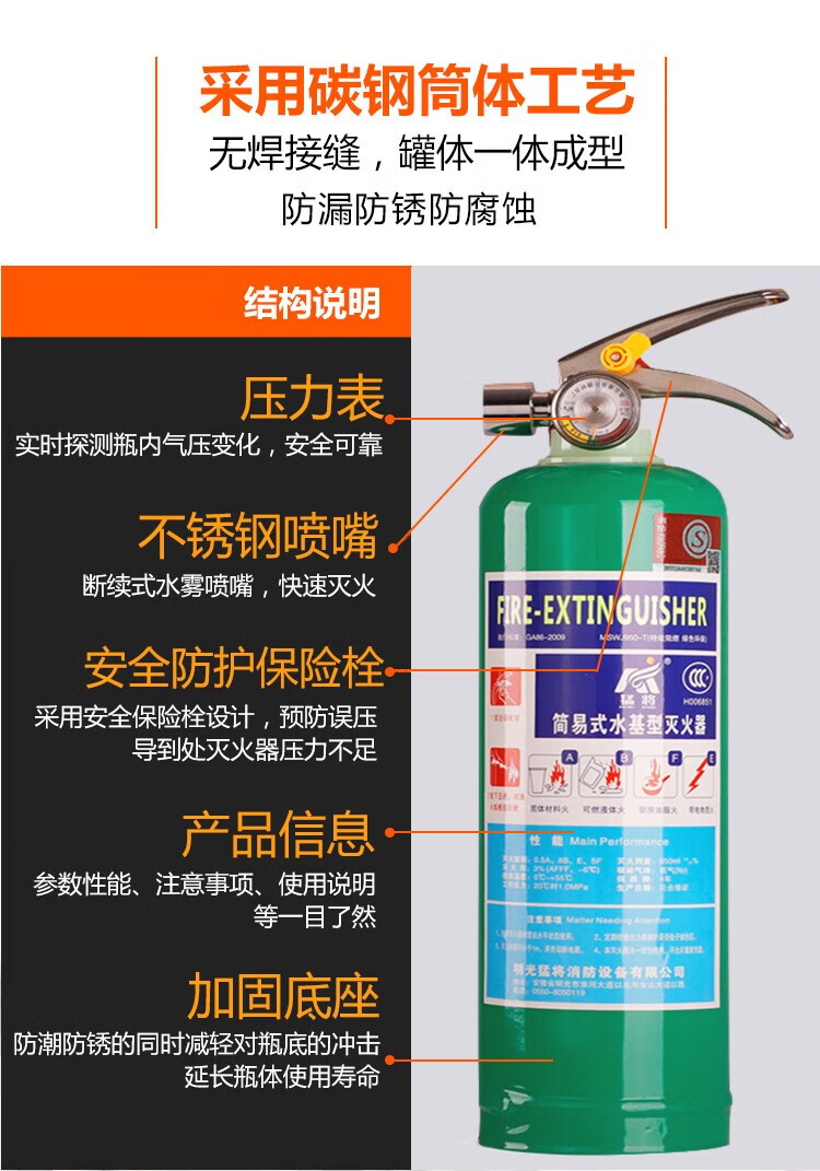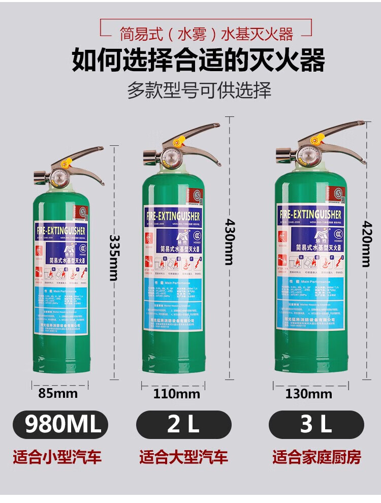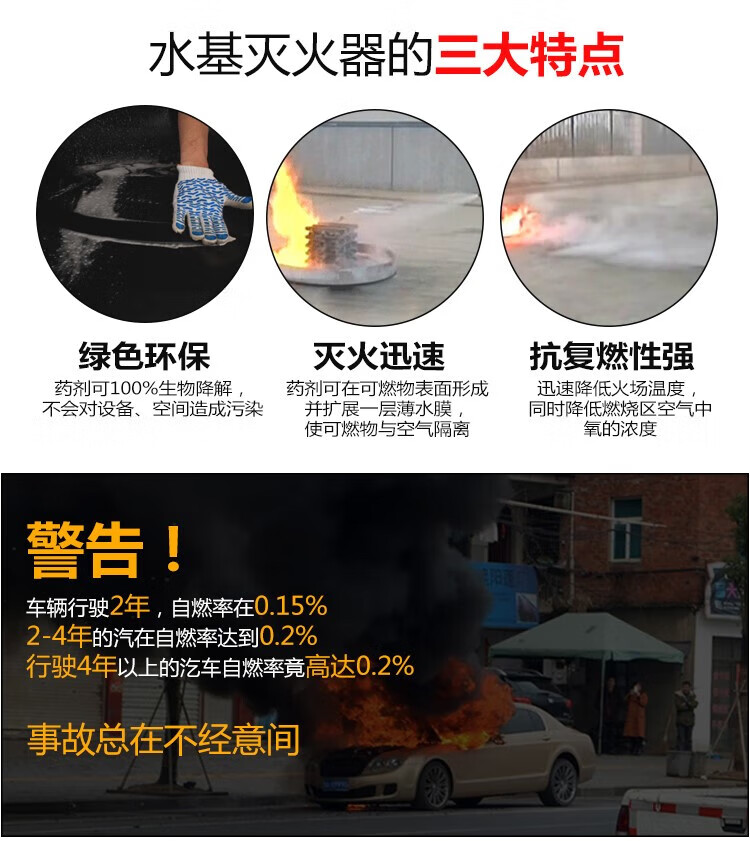 New water-based fire extinguisher commercial home store vehicle vehicle 4KG3L6L9 liter environmentally friendly fire certification environmentally friendly water-based 620ML (extinguishing oil and electric fires)