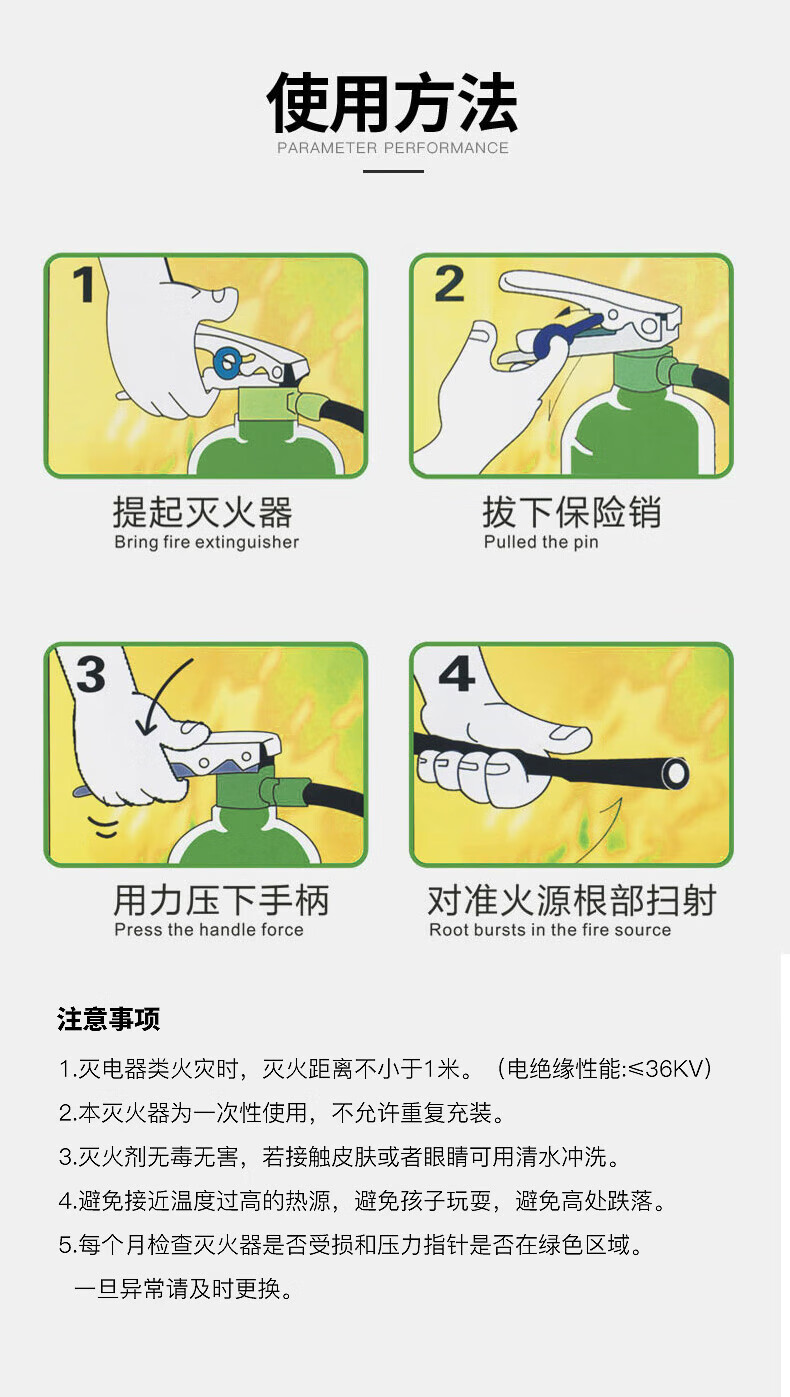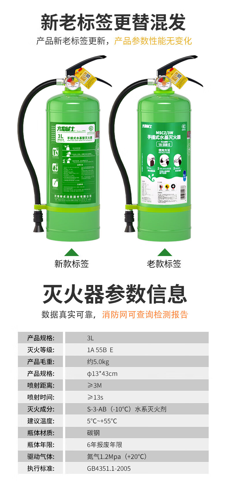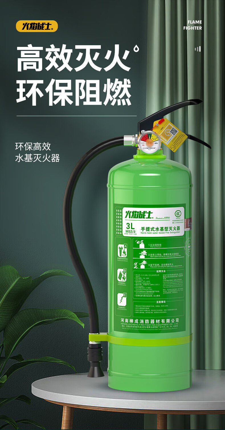 Portable water-based fire extinguisher 3L carbon steel water-based fire extinguisher for home commercial hotel factory boutique water-based 3L (stainless steel interface) hanger type
